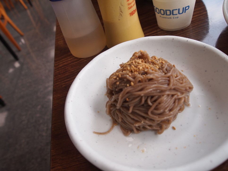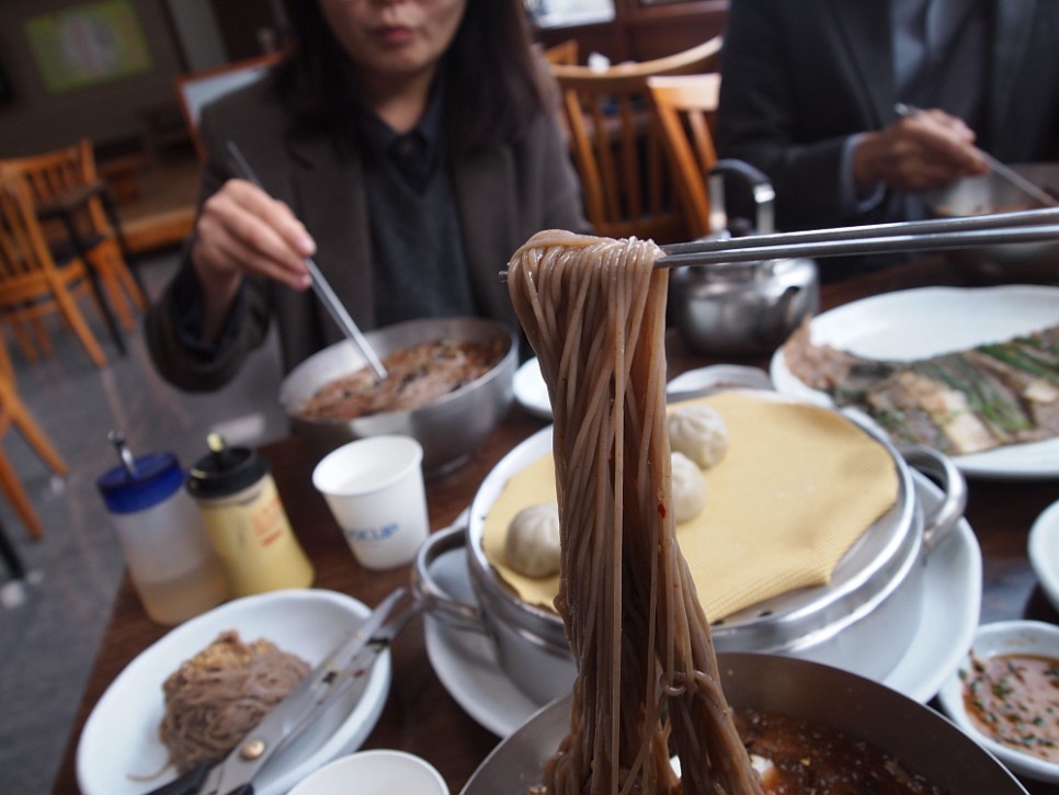 따로 말하지 않아도 이집은 면 사리를 하나 더 준다. 아무래도 금새 소화가 되어 버리는 막국수 특유의 성질 때문에 사람들이 더 달라고 많이 한 모양이다. 하지만 만두에 메밀전에 막국수까지 우린 너무 많이 먹어버리는 바람에 서비스로 내어 주는 사리는 먹지 못했다. 하지만 그 넉넉한 마음만은 너무 좋았다. 알싸한 메밀면에 슴슴한 국물이 조화를 이루니 언제 먹었는지 모르게 금새 그릇의 바닥을 보게 되었다. 참 맛나네... 평양냉면을 먹은 것 같은 만족감이 밀려 왔다. 이렇게 자연스럽고, 크게 뭔가를 첨가하지 않은 원래의 맛을 보기가 쉽지 않다. 아마 우리 동네에선 못 본 것 같다. 다들 과하게 양념하는 시대에 이렇게 부족한 듯 맛을 내는 이집의 내공이 무척 고마웠다. 제대로 된 막국수 잘 먹고 왔네!