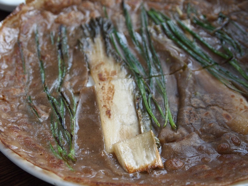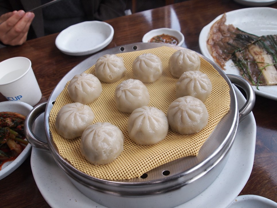 막국수 만으로 세 시간 정도 달려 도착한 원주까지의 여행으로 허기진 배를 다 채울 수 없어 우리는 감자만두와 메밀전도 주문했다. 이상한 것은 아무리 집에서 메밀전을 이렇게 쫀득하게 만들려고 해도 잘 안 되더라는 것이다. 뭔가 반죽을 배합하는 비결이 있을 것이다. 메밀전은 마치 배추전처럼 얇게 반죽을 두르고 거기에 배추잎도 하나 넣었다. 보기만 해도 건강해 지는 느낌이다. 감자 만두는 그냥 공장 만두였는데 은근히 고소한 것이 자꾸 손이 갔다. 하긴 공장 만두면 어떠랴 이렇게 스탠다드 한 맛만 보장된다면 말이다.
