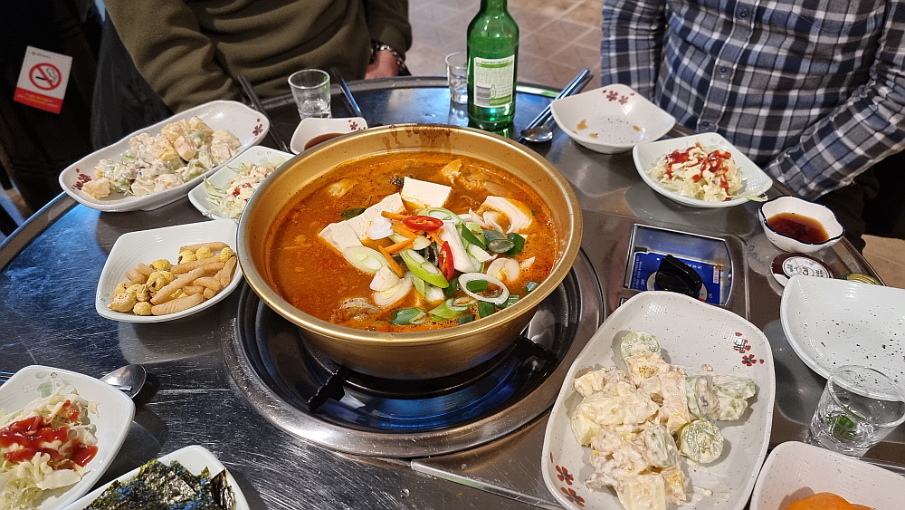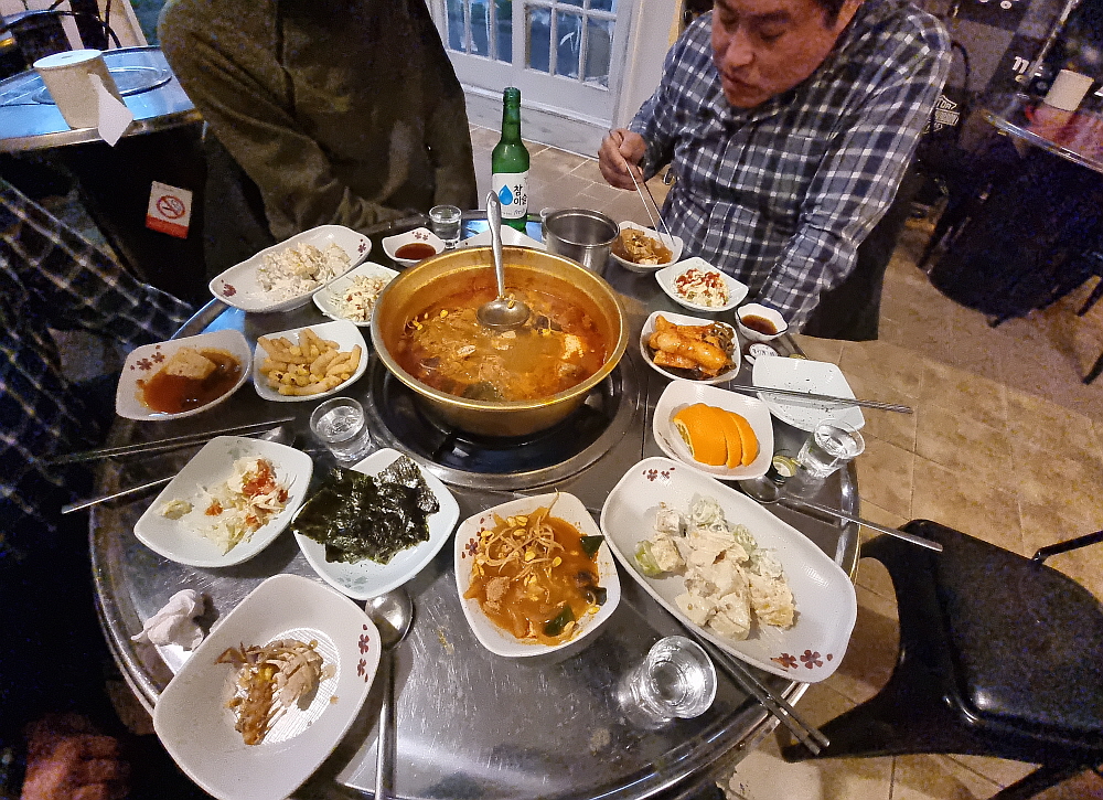 이집은 반찬도 맛이 좋은 편인데 특히 총각김치가 아주 끝내줬다. 짠듯한 김치이지만 젖가락 질을 멈추지 못했다. 두 번인가 더 달라고 하여 먹었다. 이건 찌개를 먹으러 온거야, 아님 김치를 먹으러 온거야? 1차보다 더 많은 소주병들이 난무하기 시작했다. 이집의 단점이 그것이다. 안주가 좋다보니 과음, 과식을 하게 된다. 이러면 내일 어쩔거냐고... 그래도 좋은 시간에 좋은 사람들과 맛난 안주가 있으니 더 할 나위가 없다. 이런 시간을 갖기 위해 낮에 열심히 일한거 아니냐고...