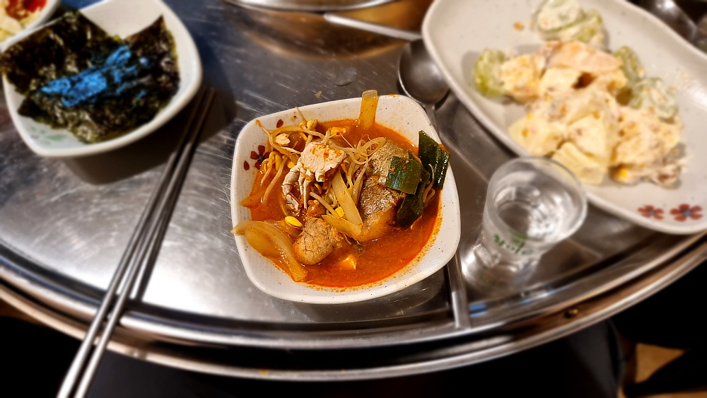 동태의 알과 꽃게도 들어간 정성 가득 찌개라 그런가? 모든 찌개가 안주가 되긴 하지만 역시 동태찌개의 위력을 당할 만한 찌개는 없을 것이다. 동태가 많이 들어간 것은 아니지만 국물에 우러난 동태만의 매력적인 맛은 소주 맛을 배가 시키는 신기한 능력이 있다. 우린 다시 회식을 시작했다. 이런 것이 술꾼들의 파라다이스이자 휴식같은 공간이리라. 국물이 너무 좋아 밥이라도 먹고 싶지만 참아야 했다. 이럴거면 아예 1차를 이리로 올 것을 그랬다. 동태찌개에 밥을 먹든 라면사리를 넣든 하는 편이 그 어떤 음식보다 나았을 것 같다.