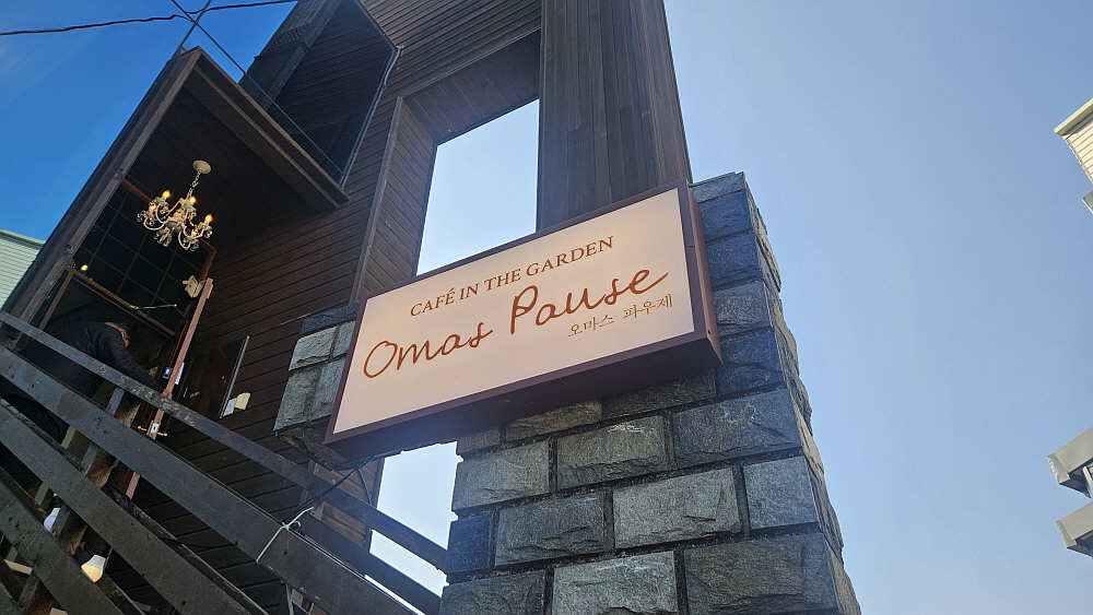 포천동에 커피 전문점이 생긴 것이 아마도 20여 년 전이었던 것 같다. 이날 가본 집이 거의 처음 문을 연 카페가 있던 자리라고 했다. 구절초로의 중간쯤에 있는 이집은 2층에 있는 카페이다. 이름이 좀 어려운데 '오마스 파우제'라는 카페이다. 이곳을 가자고 손을 잡아 끈 선배님 말이 이곳이 시니어 취향의 차분하면서도 분위기 있는 카페라 어른들이 많이 찾는다고 했다. 하긴 생각해 보면 젊은 취향의 카페나 술집은 많아도 시니어 취향이라는 카페는 근처에서 못 본 것 같다. 고령화 사회라고들 하는데 정작 시니어 전용 공간이 없다는 것은 아이러니가 아닐 수 없다.