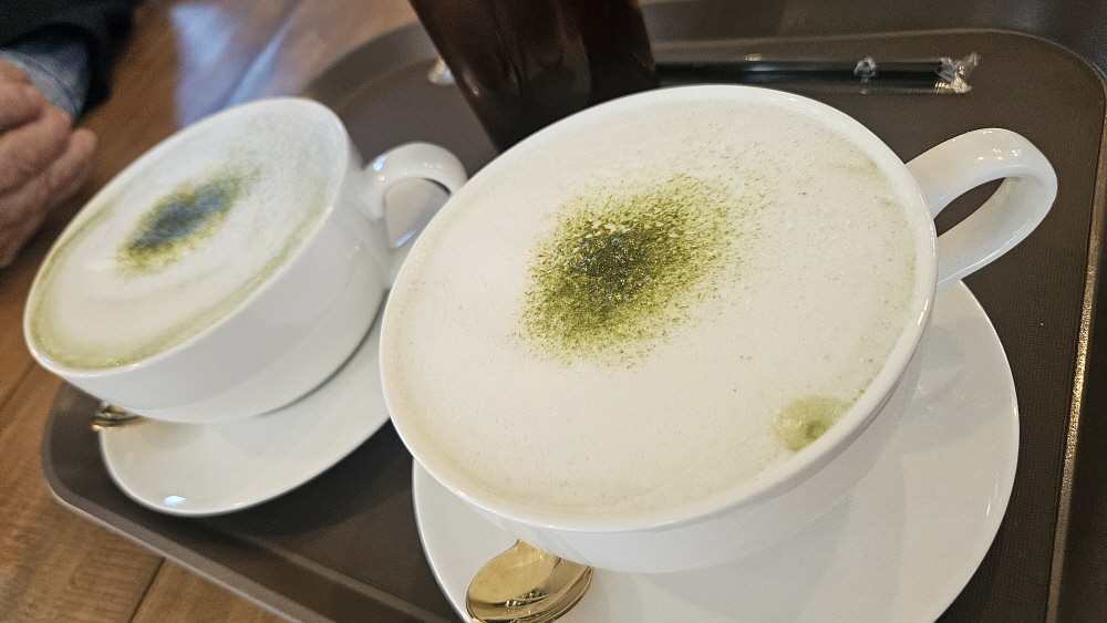 실내 인테리어는 정말 호텔 로비를 옮겨다 놓은 것처럼 엔틱한 분위기를 연출한다. 그리고 이곳이 원래 카페였던 자리였기 때문인지 몰라도 향긋한 커피 냄새가 가게 전체적으로 스며들어 있다. 이런 분위기는 정말 오랫만이다. 그리고 생각해 보면 너무 모던한 인테리어보다는 이런 풍이 이야기 나누기에는 더 자연스러울 수 있겠다는 생각마저 들었다. 개인적으로 차 하면 늘 얼죽아 스타일이기 때문에 아이스 아메리카노를 주문하지만 요즘 유행한다는 말차도 주문했다. 여기서 말차는 녹차의 어린잎을 말하는 것이란다. 그러니까 녹차 잎을 우유에 넣고 만든 것이 카페라떼 처럼 생긴 말차라떼인 것이다.