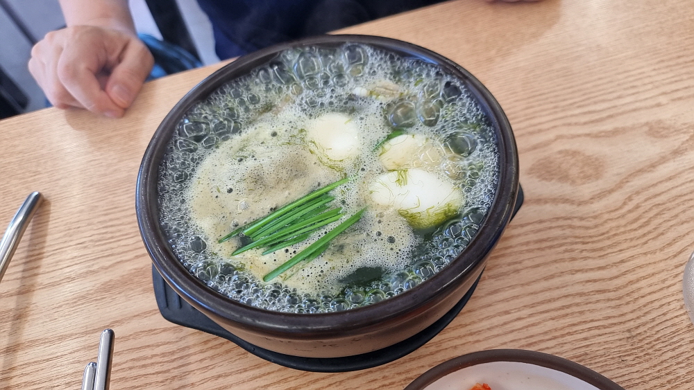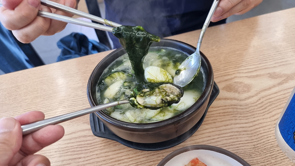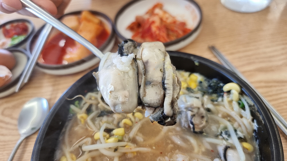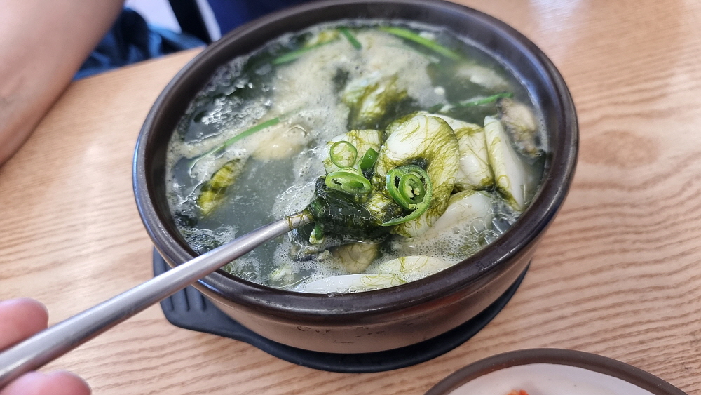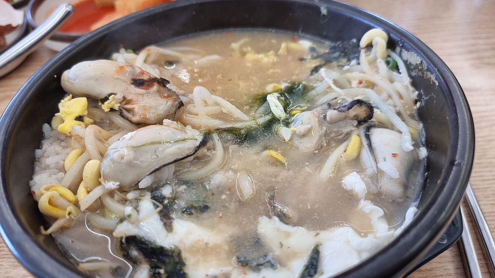 매생이 굴 떡국은 밥이 아니라 떡이 들어 있는 국이었다. 매생이를 좋아하는 사람들은 특유의 식감을 즐긴다고 한다. 하지만 매생이가 별로인 사람은 미끌거리는 식감이 좋지 않다. 그리고 이상할 정도로 매생이는 다 먹을 때까지 엄청 뜨겁다. 하지만 매생이가 그닥 맘에 들지 않았는데도 떡국으로 먹으니 묘할 정도로 맛이 좋았다. 큼직막한 굴도 맘에 들었다. 이런 떡국이라면 마다할 이유가 없다. 콩나물 국밥을 먹으러 왔는지 굴국밥을 먹으로 왔는지 헛갈리 정도로 이날 굴의 활약은 대단한 것이었다. 콩나물 국밥과 굴은 정말 천생연분인 것 같다.