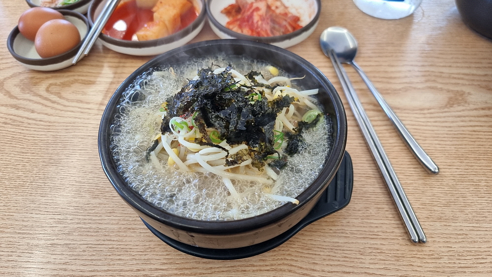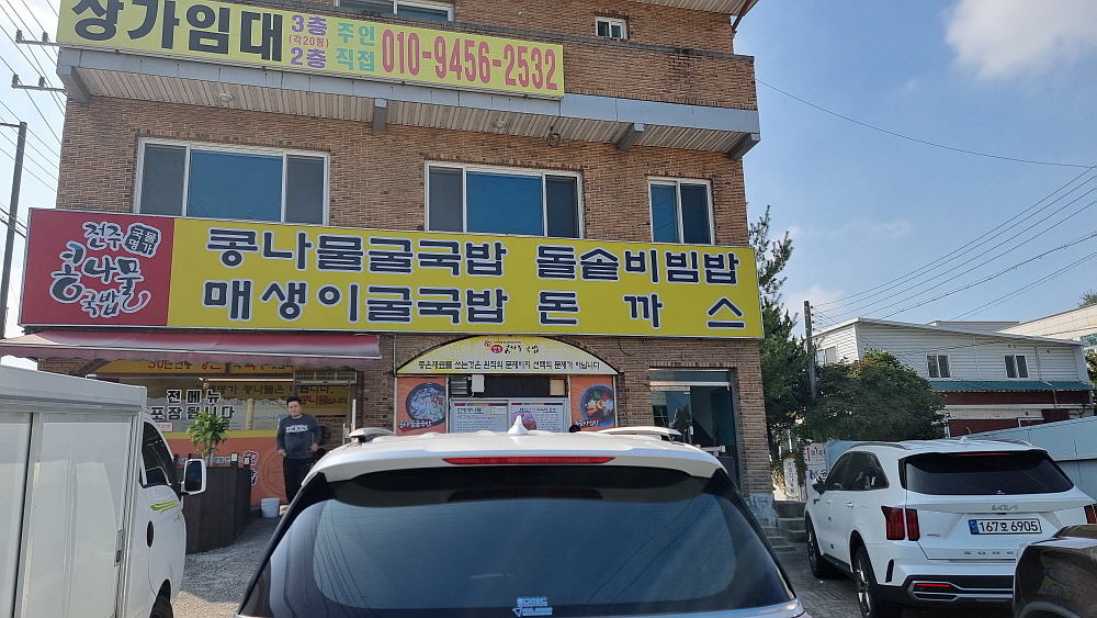 꼭 해장을 위한 것이 아니더라도 콩나물 국밥은 늘 시원한 국물 때문에 먹고 싶은 음식이다. 가장 흔하고 값이 저렴한 재료지만 영양도 많고 맛도 좋은 콩나물이 주재료인 해장국으로 담백한 맛이 강점이기도 하다. 소흘읍에 다른 콩나물 해장국 집도 있지만 여기는 어쩌면 세월이 참 오래된 곳인지 모른다. 맞는지 모르겠지만 과거 하송우리 부근에서 콩나물 해장국을 팔았던 주인장이 여기로 옮겨 온 것일 수도 있다. 우리가 가본 전주콩나물국밥 집은 43번 국도변 무봉리 순대국 본점 부근에 있다. 원래 이곳은 알천 국수집이 있던 자리다.