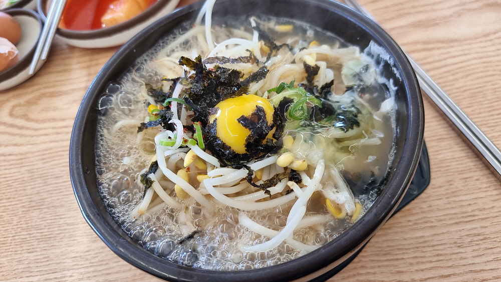 다른 집들도 그랬지만 어릴적 콩나물을 집에서 직접 재배하여 먹기도 했다. 검은 천으로 빛을 가린 콩나물 시루에 매일 물을 부어가면서 콩나무가 아니라 콩나물을 만드는 과정을 본적이 있다. 물이 밑으로 그냥 빠져 버리는 것 같지만 조금씩 먹으면서 나물이 되어간다고 하여 평생교육이나 사회복지 분야에서 콩나물을 밑빠진 독에 물 붓는 과정이지만 꼭 필요하다고 말하기도 한다. 아무튼 콩이란 작물이 참 신기한 것이 그렇게 나무도 되고 나물도 된다. 이집에서는 그런 콩나물을 한방재료를 넣어 기른다고 했다.