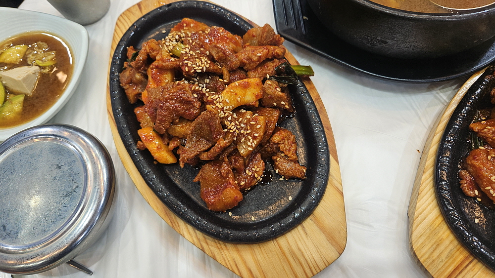 가만히 보니 제육볶음에 떡도 들어 있다. 개인적으로 참 좋아하는 구성이다. 구수한 된장찌개 건강함을 더하고, 갓만든 김치 겉절이도 입안에 침 고이게 만들었다. 가장 맛이 좋았던 것은 큼직한 제육볶음이었다. 달달하면서 부드럽고 돼지고기 특유의 씹는 식감이 아주 좋았다. 우린 이런 저런 이야기들을 하면서 맛나게 점심을 먹었다. 이렇게 모두 함께 밥을 먹고 있으니 식구들같다는 생각도 들었다. 하긴 같은 밥상에서 밥을 먹으면 식구가 맞네~ 밥을 많이 먹는 사람들도 여기서는 부담이 없다. 리필하면 되니까 말이다. 반찬도 넉넉하고 말이다.