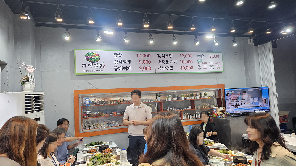 더운 여름에 제일 잘 맞는 점심 메뉴는 시원한 쌈채소를 싸먹는 쌈밥이 아닌가 한다. 싱싱한 쌈 채소를 맘껏 먹으면서 잃었던 기력도 회복되는 것 같아 쌈밥을 무척 좋아한다. 하지만 요즘 물가가 많이 올라 쌈밥이 그냥 한끼 푸짐하게 먹는 간단한 점심거리는 아니다. 보통 한 사람이 14,000원 ~ 15,000원은 내야 한다. 결코 싼 가격이 아니다. 이날은 회의를 마치고 누군가 쌈밥을 사준다고 했다. 내가 돈을 내지 않으니 가격이 얼마인지 신경을 쓰지 않았다. 하지만 식당에 가서 보니 너무나 착한 가격이었다. 여긴 일인분에 10,000원이었다. 아직도 이런 좋은 가격의 쌈밥집이 있다는 것이 일단은 놀라웠다.