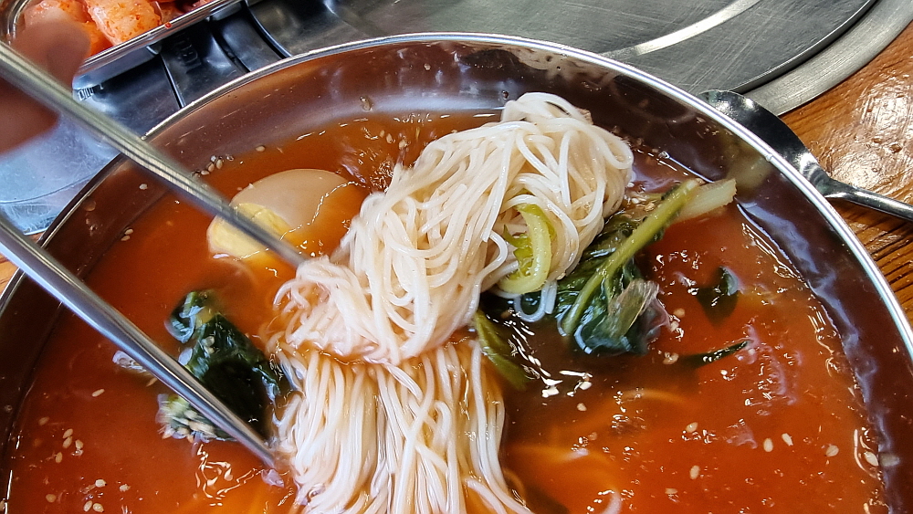 계절이 더워지면 자연스럽게 찾게 되는 것이 시원한 국물의 국수나 냉면이다. 여름이라고 너무 차게만 먹으면 안 된다고들 하지만 땀나는 계절에 더운 국물을 찾는 일은 아무래도 적을 수밖에 없다. 해룡마을은 선단동 차의과학대 근처의 마을이다. 하지만 그 마을 이름이 상호가 된 국수집이 요즘 포천에서 자주 눈에 띈다. 아마도 체인점인 것 같은데 포천 해룡마을이 모체라 한다면 포천을 중심으로 새로운 체인사업체가 하나 더 생긴 셈이다. 무봉리 순대국처럼 전국적인 체인점이 될 수도 있을 것이다. 우리가 간 곳은 소흘읍에서 가산으로 넘어가는 초입에 생긴 해룡마을 국수집이었다.