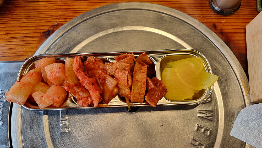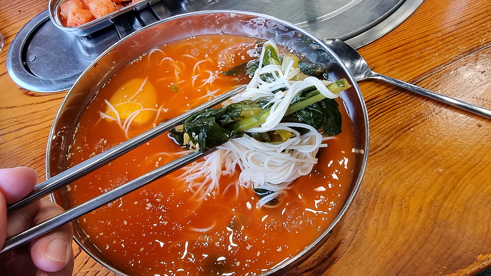 반찬과 물, 그리고 육수도 모두 셀프였다. 그런데 이상할 정도로 반찬이 입에 착 감겼다. 백반집이라 해도 될 정도로 맛이 괜찮았다. 잠시 앉아 있노라니 드디어 우리가 주문한 콩국수와 열무국수가 나왔다. 여름엔 콩국수는 적어도 40번 이상은 먹는 단골메뉴다. 과거엔 콩국수를 중국집에서 많이 팔았었다. 그래서 콩국수 면이 짜장면처럼 굵은 면으로 자주 먹었다. 하지만 아무래도 콩국수도 소면으로 먹는 편이 더 좋다. 콩국물이 면에 잘 붙어 올라오고, 소면의 가늘고 부드러운 면발과 고소한 콩국물이 더 잘 어울리기 때문이다.