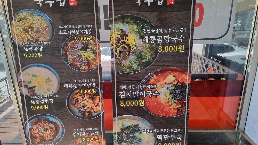 국수집이라고는 하지만 설렁탕이나 묵밥같은 밥도 있다. 그러니까 여긴 국수집이라기 보다는 일반적인 식당이라 보는 것이 더 맞는 것 같다. 물론 국수 메뉴가 단연 많다. 우린 들어서기 무섭게 열무김치국수와 콩국수를 주문했다. 가격은 각각 9,000원이다. 국수 치고 싼 값은 아니지만 요즘 하도 물가가 올라 만원이 안 되는 가격이라느 착한 것 같기도 하다. 작아 보였는데 실내는 제법 컸다. 점심 시간이라 그런지 근처 사업장에서 일하다 온 것 같은 아재들이 많았다. 대부분 뜨거운 국물보다는 시원한 국수들을 먹고 있었다.