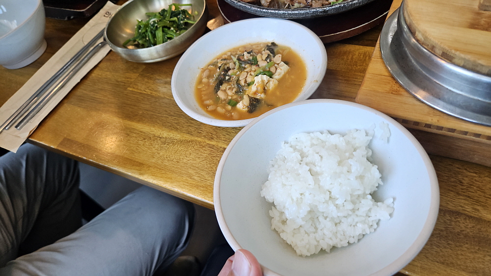 이렇게 쌀이 좋으면 분명 평소보다 과식을 할 수밖에 없다. 아무리 입맛이 없다가도 갓 지은 쌀밥의 향기를 맡으면 이렇게 된다. 한국 사람들은 다 비슷할 것이다. 아는 사람들과 습관처럼 "밥 한 번 먹자~"는 말을 하곤 하는데 이런 맛난 쌀밥이 그런 관계성까지 좋게 만들어 줄 수 있을 것 같다는 생각이 들었다. 한 끼라 해도 함께 마주앉아 찌개와 반찬을 나누는 사이라면 보통 인연은 아닐 것이다. 그런 사람사이를 귀하게 생각하게 만드는 밥상이다. 참 신기한 일이다. 우린 일 때문에 왔지만 밥이 좋아서인지 다들 약간 놀러 온 것처럼 들뜬 기분이었다는 것... 좋은 밥 한끼가 만들어준 좋은 분위기이다.