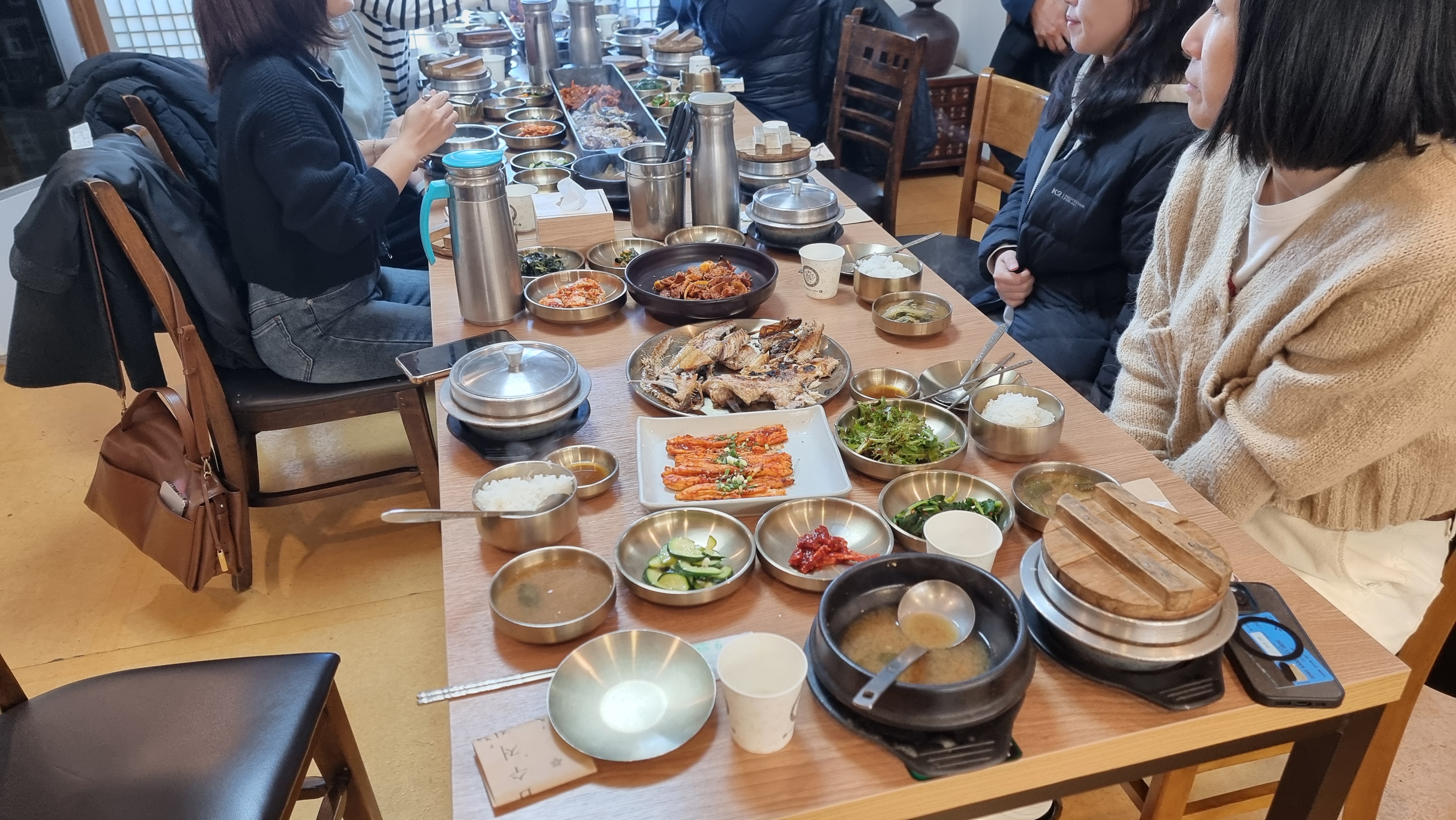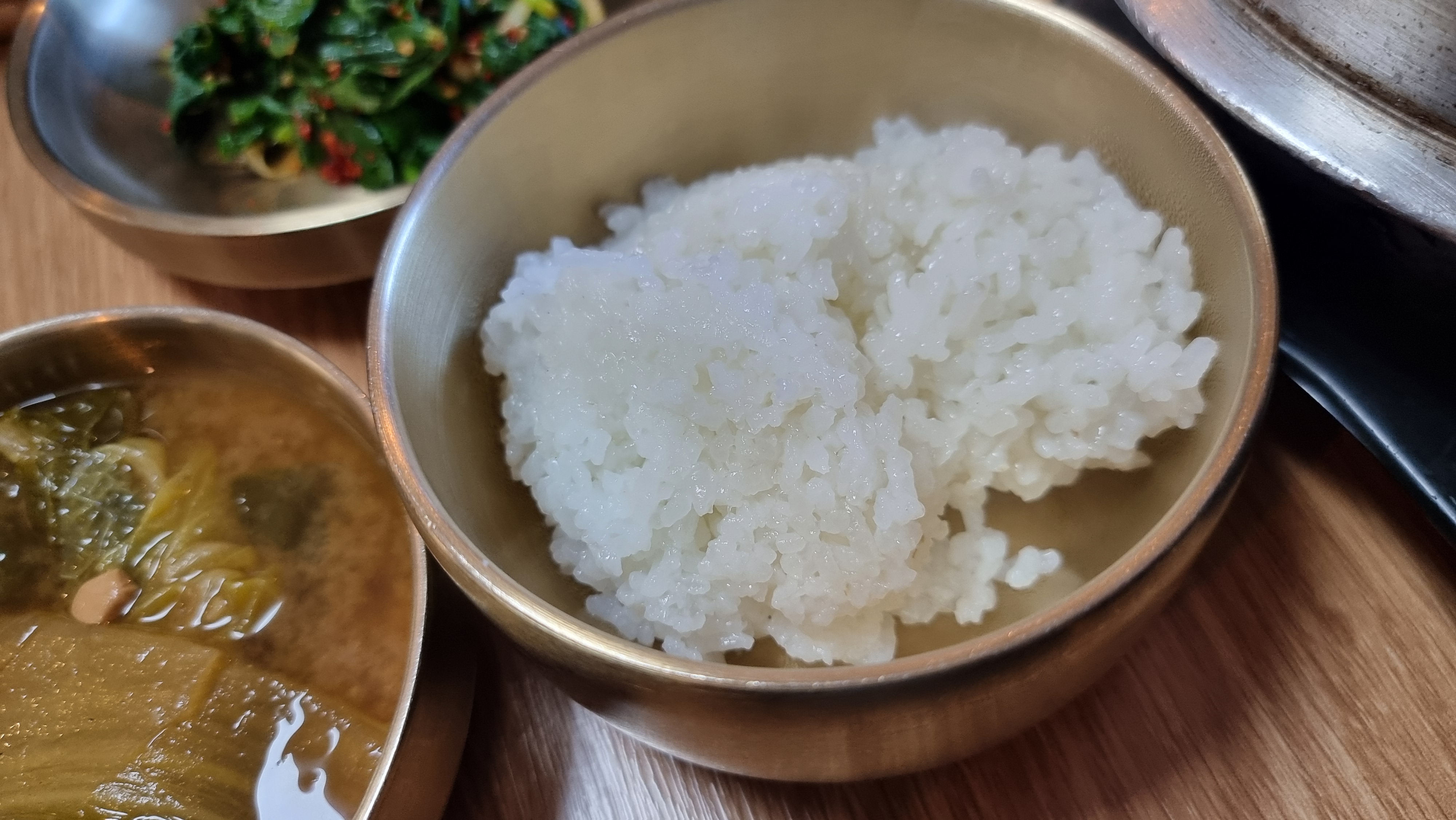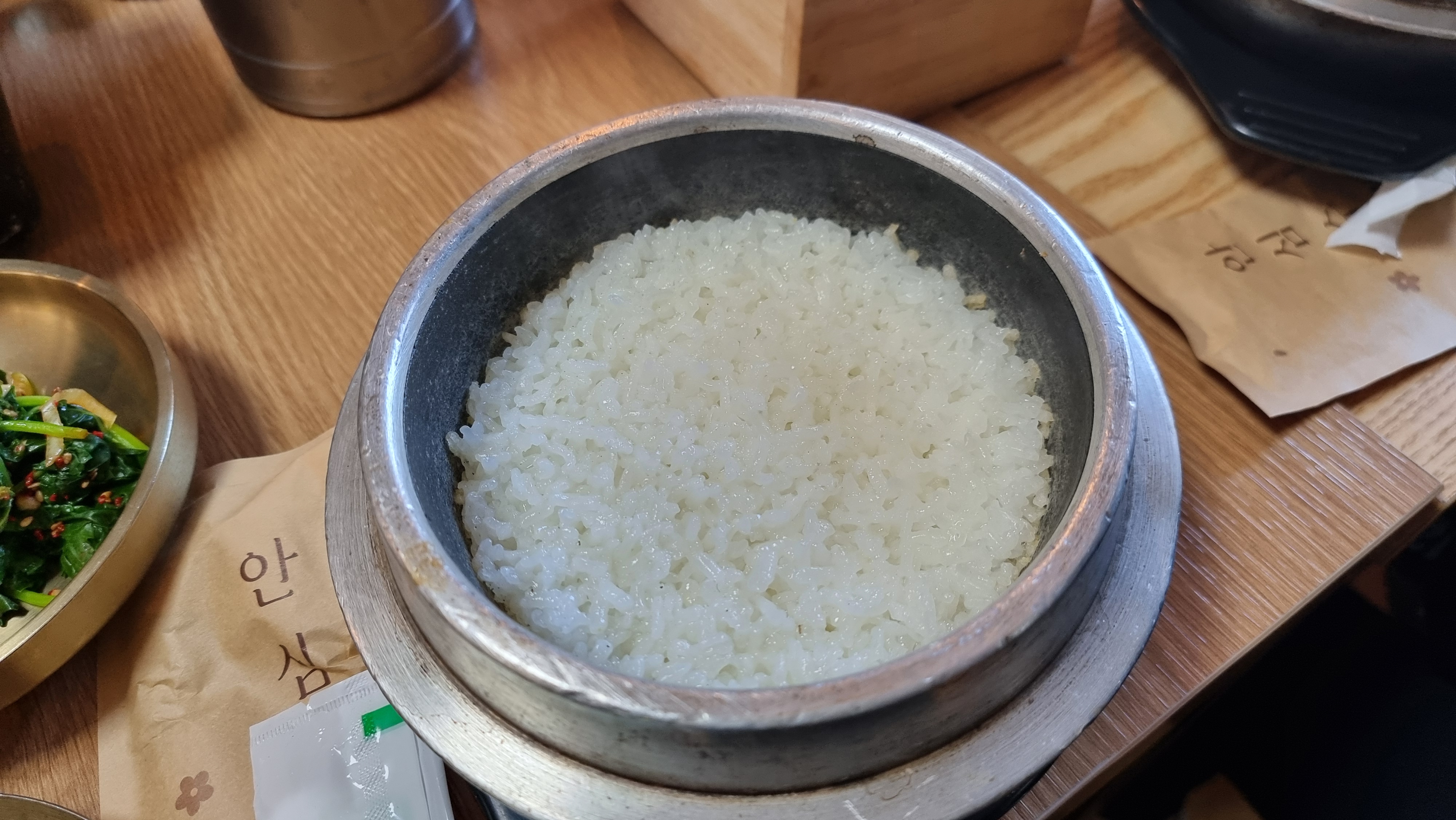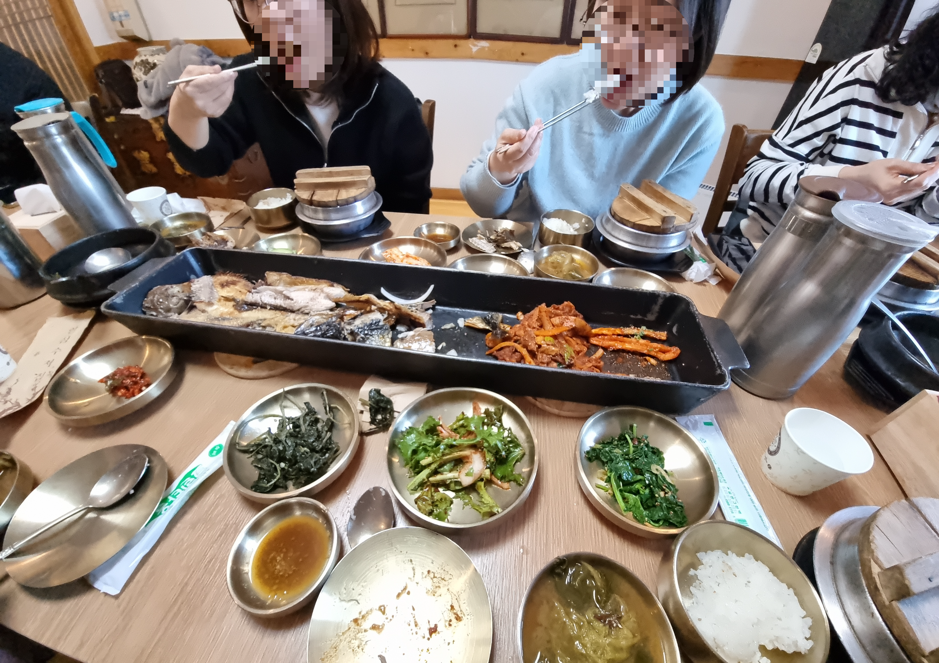 미리 예약을 해 둔 배려 덕분에 우리는 들어가자 마자 바로 식사를 할 수 있었다. 특이하게 생긴 팬 속에 생선을 넣어 굽는 모양이었다. 거기엔 생선만 있는 것이 아니라 제육볶음과 더덕구이도 있었다. 벌써 보기만 해도 입안에 침이 고이는 비주얼이었다. 생선도 먹기 좋게 미리 어느 정도는 절단을 해 놓은 상태였다. 이제 정말 앉아서 숟가락 들고 먹기만 하면 되는 것이다. 워낙 이천쌀에 대한 이야기를 많이 들은터라 과연 제대로 된 솥밥으로 갓지은 이천쌀밥이 어떨지 궁금했다. 약간의 밑반찬도 있어 여기가 백반집이라는 사실을 다시 한 번 알게 해 주었다.