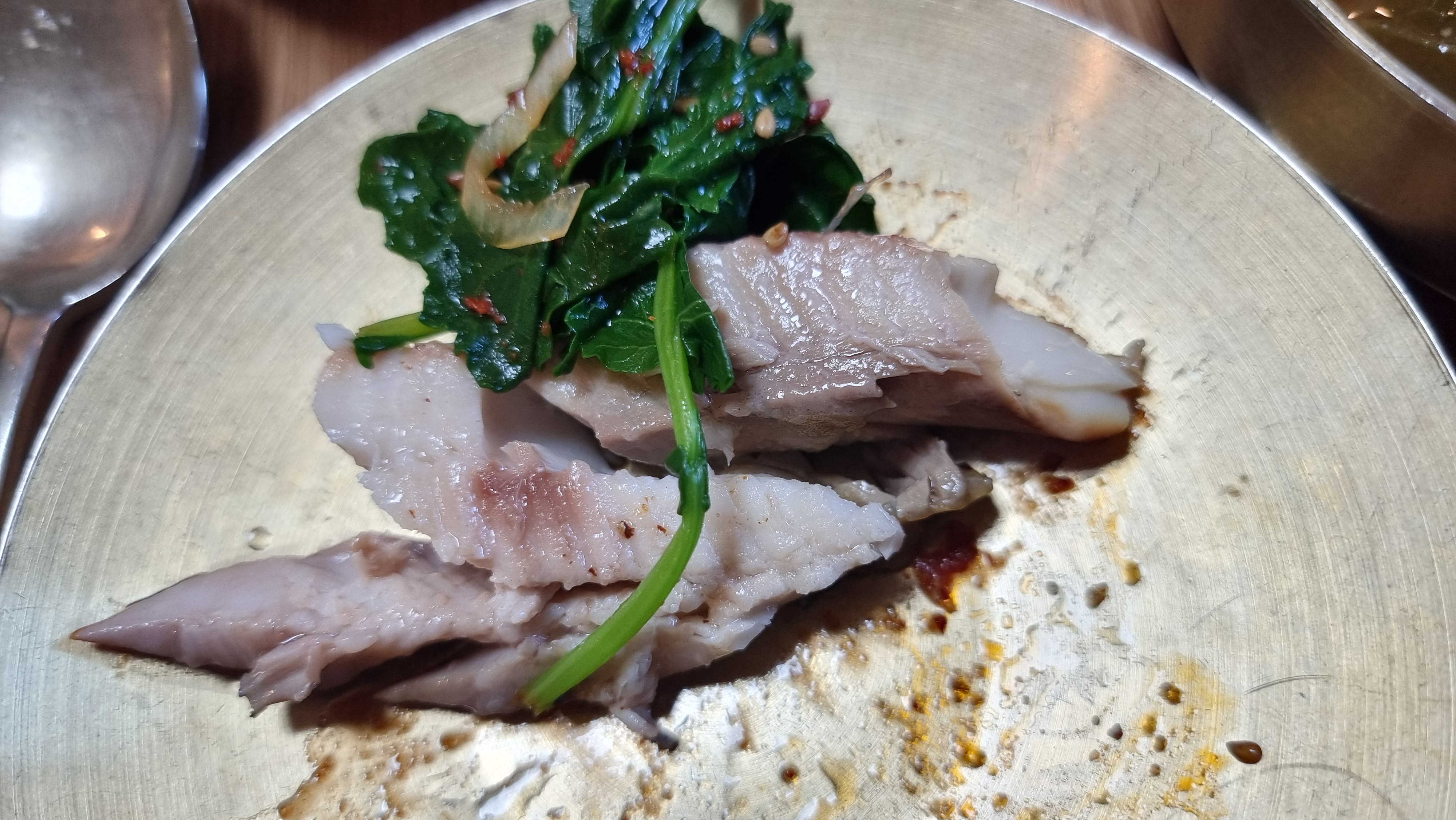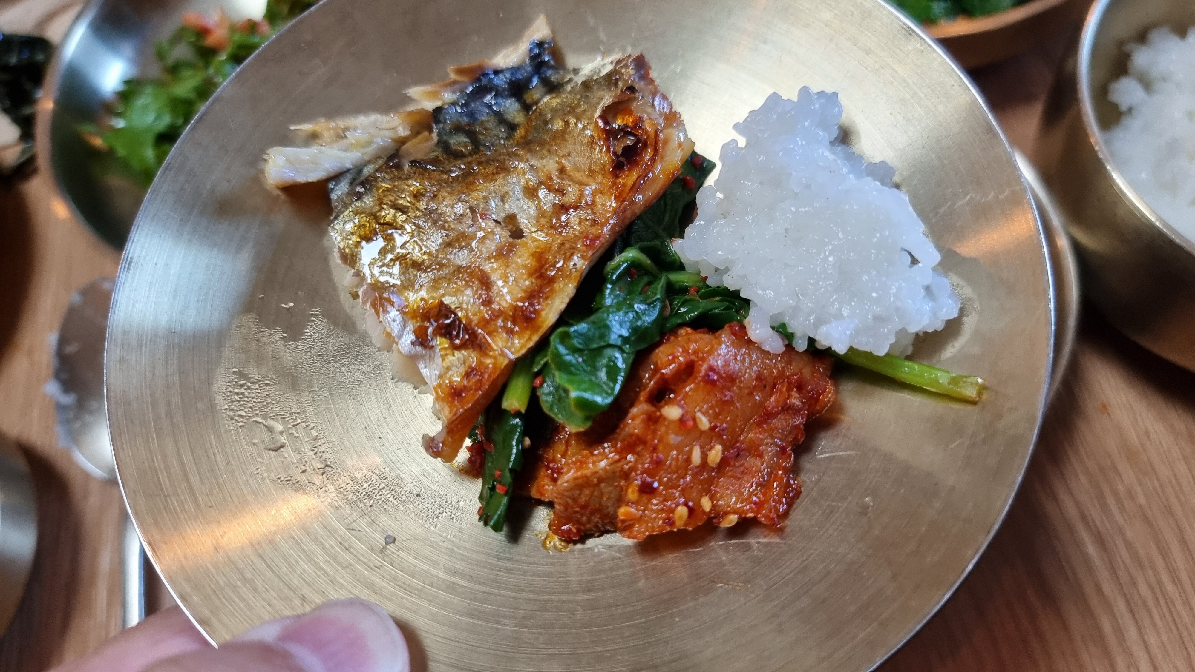 쌀밥에 가장 잘 어울리는 반찬은 무엇일까? 개인적으로는 잘 익은 자반 고등어가 아닐까 싶다. 하얀쌀밥 위에 올라간 자반고등어 한 점이 주는 시각적인 만족감은 매우 크다. 입안에 들어가면 짭짤한 맛과 고소한 맛, 그리고 쌀의 단맛이 확 섞이면서 그대로 풍미를 더해준다. 물론 맛난 쌀밥은 김치 하나만 있어도 한 그릇 뚝딱이라고 하지만 이렇게 고급진 자반 고등어가 있다면 두 공지도 너끈할 것이다. 즐거운 대화를 나누면서 먹는 만족스러운 점심시간... 언제 밥 한 공기가 다 입으로 들어갔는지 알지 못할 정도로 정말 정신없이 먹었다.