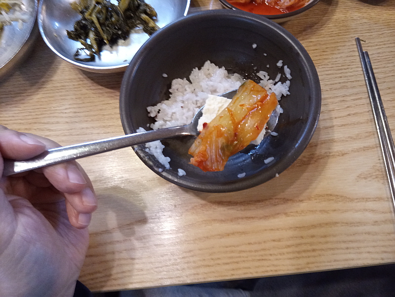 거기에 한국 사람들의 영혼을 달래주는 된장찌개가 합세하니 이 밥상이 말 그대로 한 끼 식사의 완전체가 된다. 얼마나 열심히 먹었는지 우리는 한동안 말을 잊었다. 나 역시 이렇게 집중해서 먹는 식사가 얼마나 될까 싶을 정도로 열중하여 먹었다. 왜 우리 같은 아재와 아줌마가 손님으로 많은지 알 것 같았다. 우리는 아무리 아니라 해도 빵이나 스테이크, 라면으로는 만족할 수 없는 이런 진정한 밥상에 대한 동경이 있다.