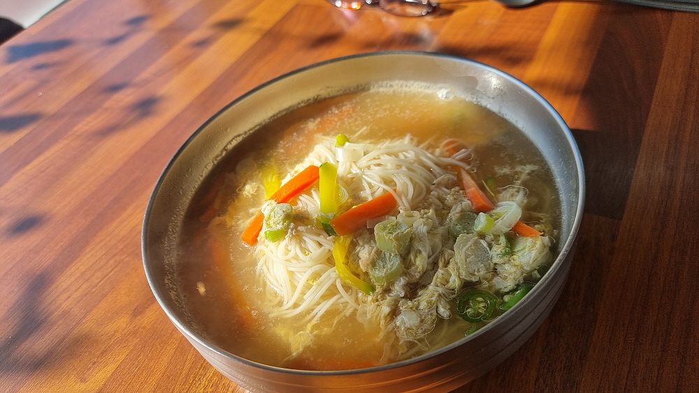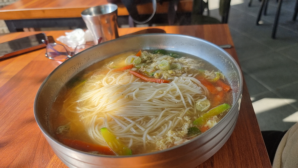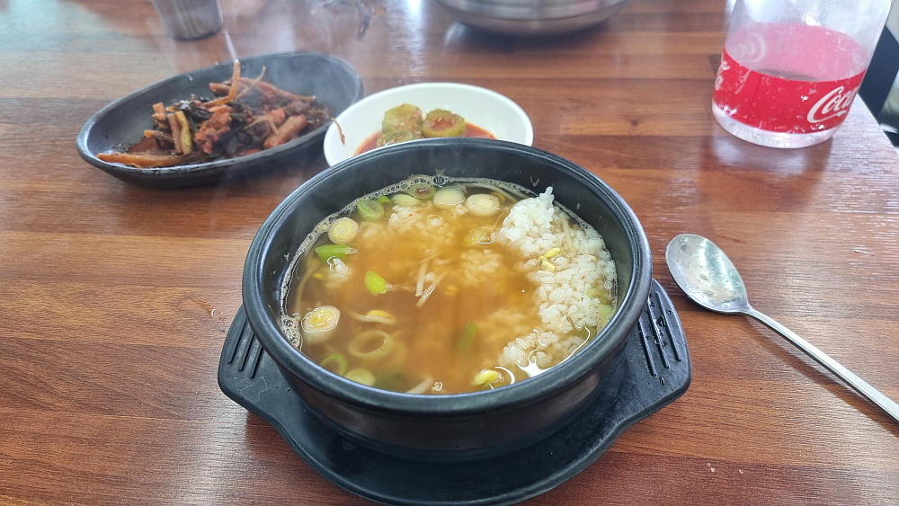 상호가 문화해장국인데 안에 들어가보니 여기서 말하는 해장국은 양평해장국 같은 고기를 이용한 국물이 아니라 콩나물과 황태 해장국을 가리키는 것이었다. 우리는 시그니쳐 메뉴인 콩나물 해장국과 잔치국수를 주문했다. 보통 다른 손님들은 생선구이를 많이들 먹고 있었는데 생선구이를 주문하는 경우와 해장국을 주문하는 경우 나오는 반찬이 달랐다. 아마도 음식 가격 차이 때문인 것 같았다. 아무튼 콩나물 해장국의 비주얼은 아주 담백, 단촐 그 자체였다. 맛도 그랬다. 식당에서 만든 해장국이라기 보다는 아는 사람이 집에서 끓여 준 것 같은 그런 맛이었다.