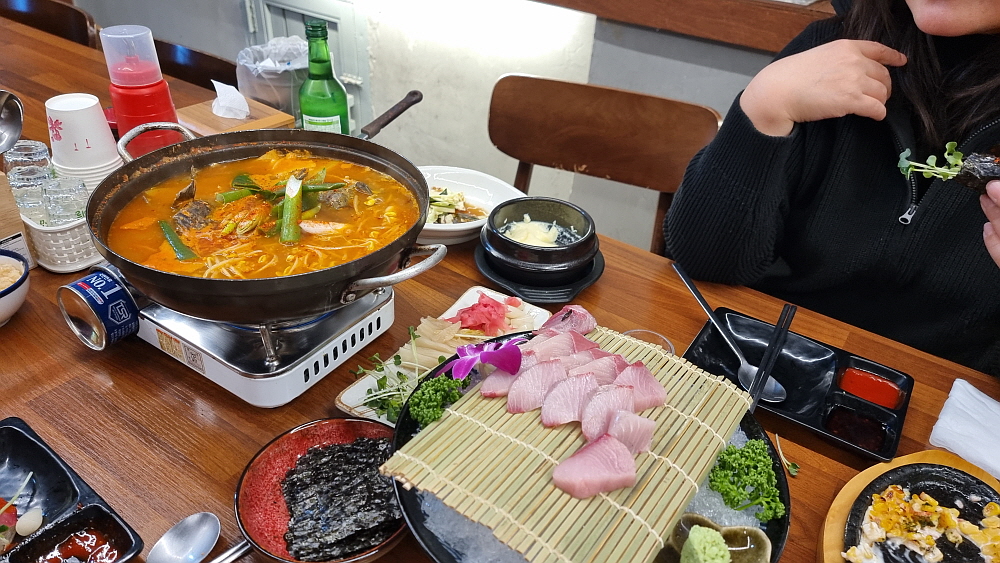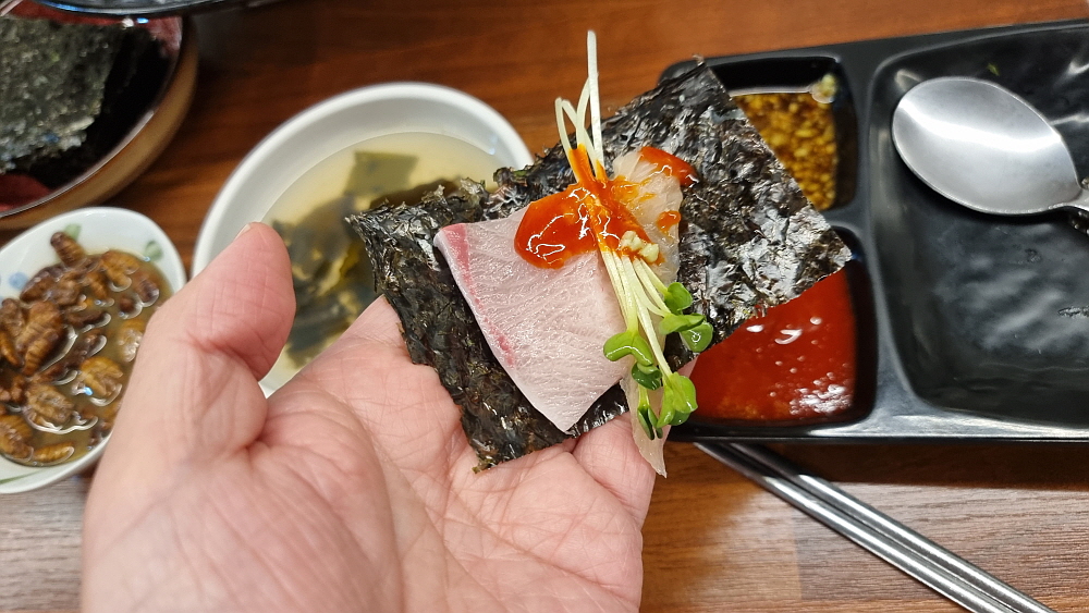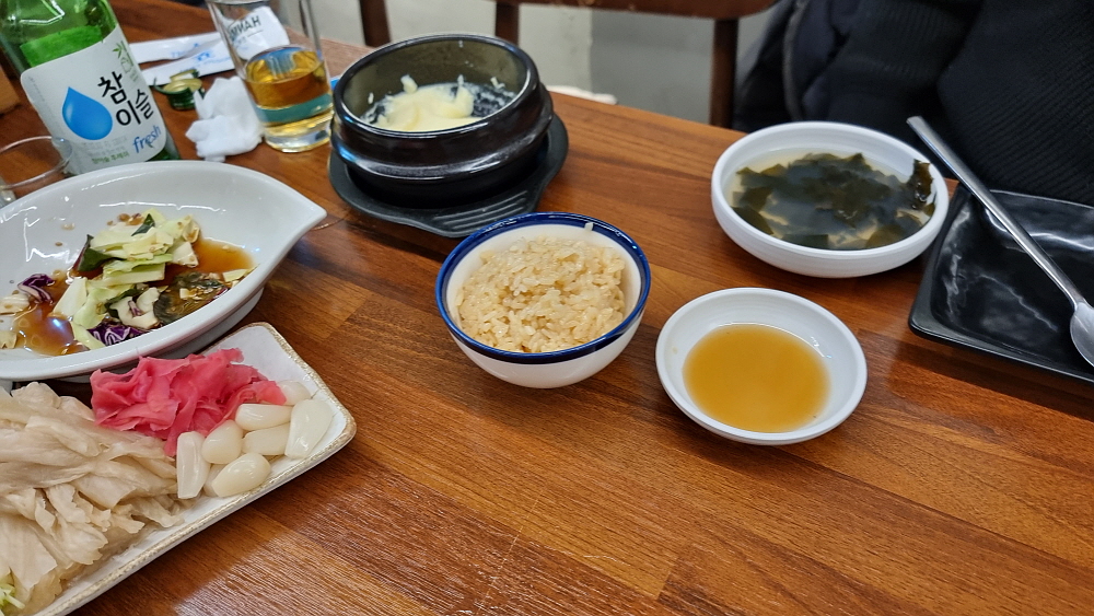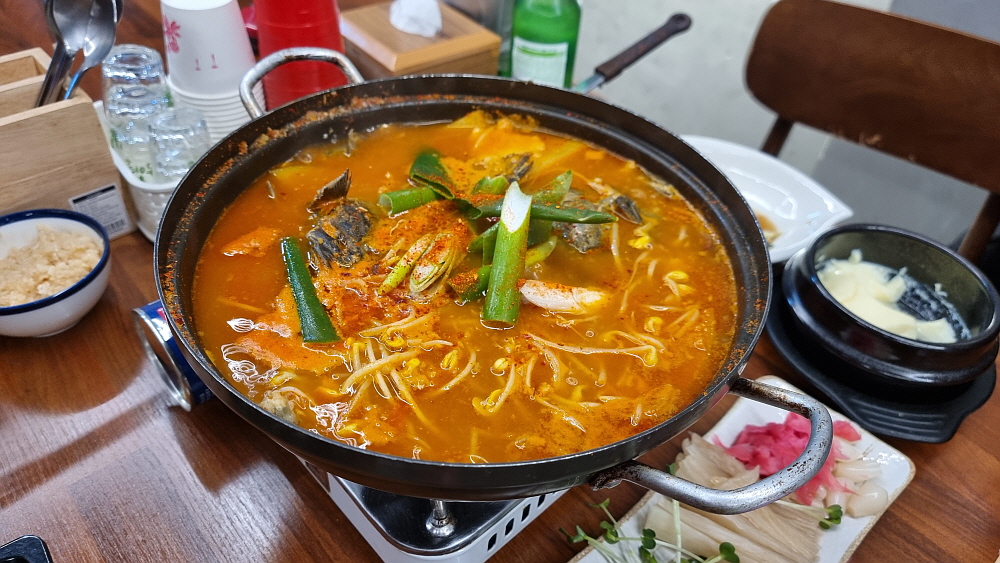 하지만 역시 방어는 생선 자체를 기름장에 찍어 먹는 것이 제일 맛이 좋다. 말 그대로 술을 부르는 맛이다. 이런 부드럽고, 적당히 기름진 생선은 참치 말고는 없을 것이다. 방어와 참치가 친척지간이던가? 잘 모르겠네... 대방어 한 접시는 금새 바닥이 나고 말았다. 이렇게 먹다간 오늘 정신없이 뭔가를 먹어 치울 것이다. 정신을 차려야 한다. 결국 우리는 매운탕을 예정보다 조금 일찍 주문했다. 여긴 횟값이 싼 대신 매운탕은 1만 원을 따로 내야 한다. 그래도 회를 먹었는데 매운탕을 먹지 않고 나갈 수는 없는 노릇 아닌가?