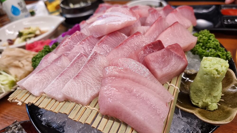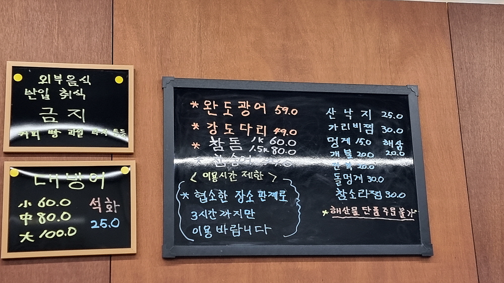 오죽하면 장소가 협소하니 세 시간 이상은 앉아 있지 말란다. 횟집에선 당연히 술을 먹게 되는데도 불구하고 시간의 제약이 있다는 것은 그만큼 이 가게가 장사가 된다는 소리다. 우리는 이날 들어 왔다는 대방어를 주문했다. 이맘때가 대방어의 시기이니 한 번은 먹어 주어야 한다. 방어의 기름이 한껏 올라있는 겨울철의 방어회맛은 정말 일품이다. 다만 요즘 방어값이 좀 비싸다 하더니 셋이 먹으려면 8만 원 인가를 내야 했다. 하긴 그것도 비싸다고는 하지 못할 것이다. 요즘 물가가 어디 안 오른 물건이 있던가?