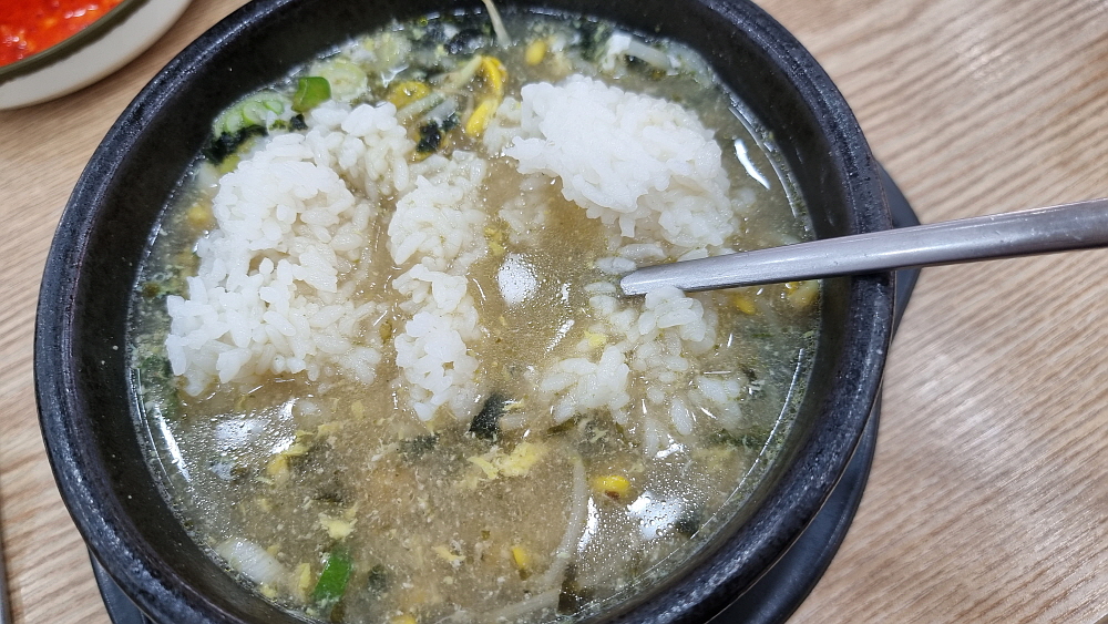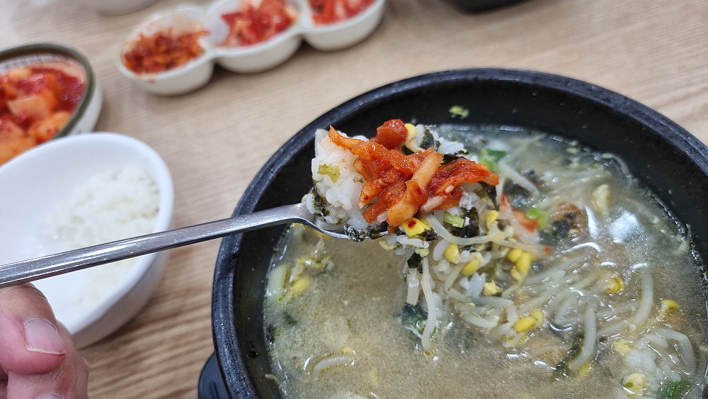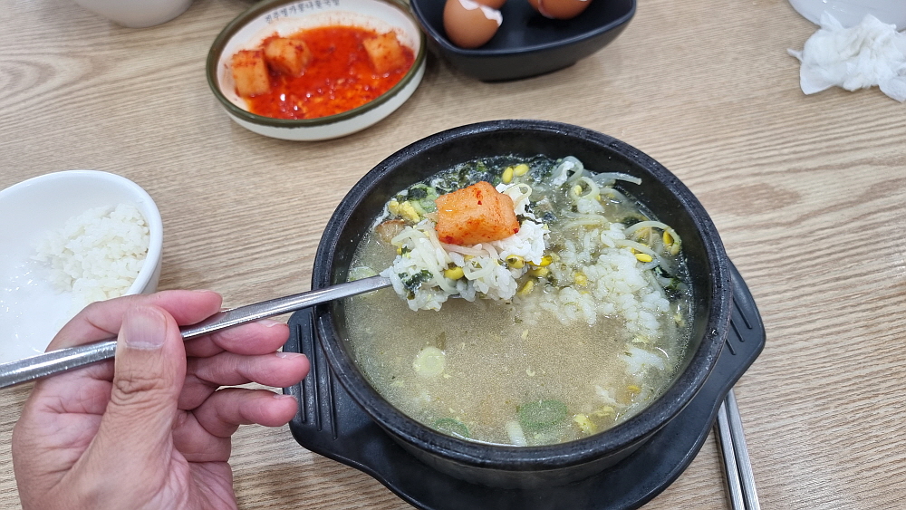 우리나라에 3대 해장국이라 불리는 아침을 여는 국밥들이 있다. 선지해장국과 북어해장국 그리고 콩나물 해장국이 그것이다. 사람의 취향에 따라 어떤 국밥이 더 나의 아침을 개운하고 맑게 열어주느냐가 다를 것이다. 개인적으로는 북어로 만든 뽀얀 국물을 가장 좋아하지만 우리 주변에서 가장 쉽게 만날 수 있는 아침해장국의 대명사는 콩나물국밥이 아닌가 한다. 가격도 저렴하고 누구나 부담없이 먹기 때문에 크게 싫다는 사람을 보지 못했다. 송우리에도 몇 군데 콩나물국밥집이 있는데 이날은 오전 8시쯤으로 이른 시간이었기 때문에 문 연 집을 찾는 것이 쉽지 않았다.