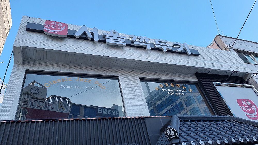 부산의 광안리는 관광지이고 젊은 취향의 지역이다 보니 밤 문화는 화려하고 충분하지만 과연 이른 아침의 해장문화도 있을까 궁금했다. 요즘 젊은 사람들은 술도 많이 마시지 않는다 하는데 이른 아침에 나와 해장국을 사먹는 것이 취향에 맞을지 모르겠다. 어젯밤 그렇게 화려했던 광안리 해수욕장은 산책을 나온 중년 이상의 성인층이 대부분이었고 간간히 운동을 하는 젊은 사람들이 있긴 했다. 하지만 역시나 문을 연 아침 해장 전문 식당은 보이지 않았다. 과연 어디에 우리가 원하는 식당이 있을까 둘러보다 이집을 발견했다. 부산의 광안리에 있지만 식당의 이름은 서울깍두기 곰탕집이다.