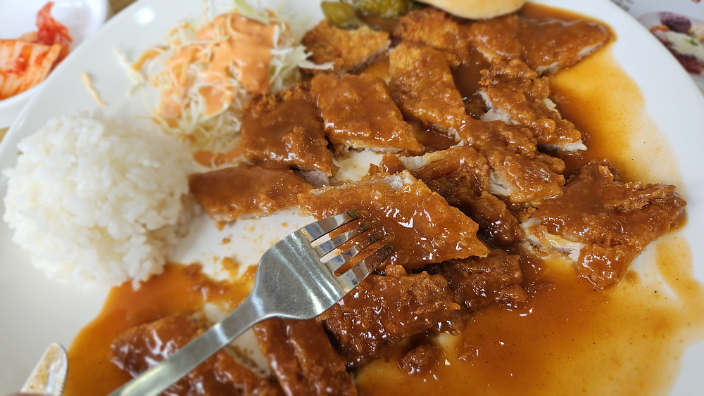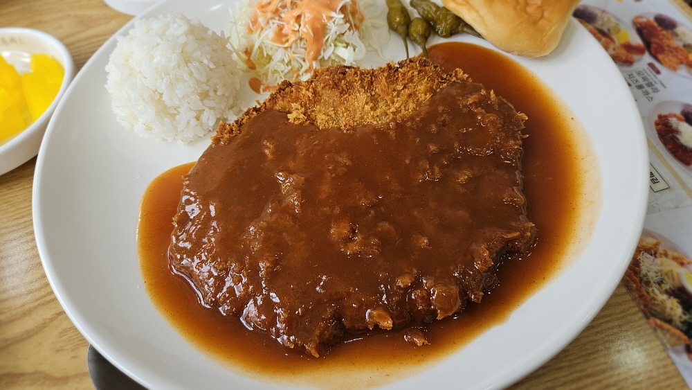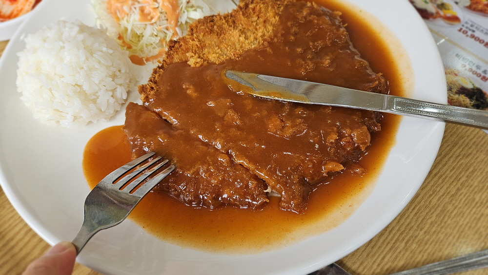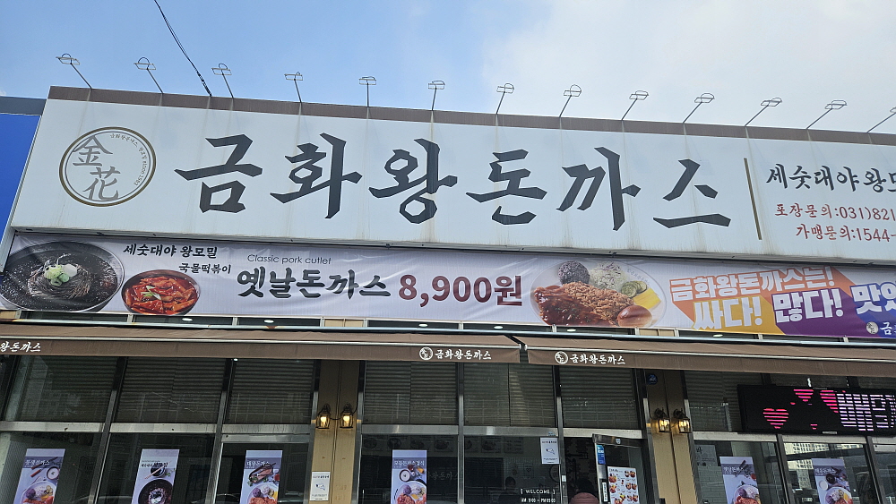 요즘엔 일본식 돈가스라 하여 두께가 아주 두툼한 돈가스도 유행하지만 아무래도 예전에 먹었던 얇고 넓적한 돈가스 생각이 난다. 돼지고기라는 생각이 들지 않을 정도로 얇게 펴고, 기름에 적당하게 잘 튀겨낸 돈가스는 정말 가끔 먹고 싶은 음식이다. 이날 그랬다. 꼭 먹고 싶었다. 여기 저기 이런 욕구를 채워 줄만한 곳이 없을까 양주 곳곳을 다녔다. 그러다 이집을 발견했다. 금화왕돈가스 라는 곳이다. 어하터널을 지나 멀리 가지 않은 곳에 위치한 식당으로 아마도 체인점 인 것 같았다. 여기는 일단 가성비가 좋다. 오리지널 돈가스의 가격이 8,900원으로 아주 착한 편이다.