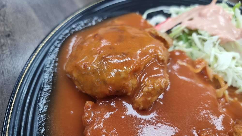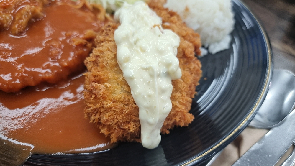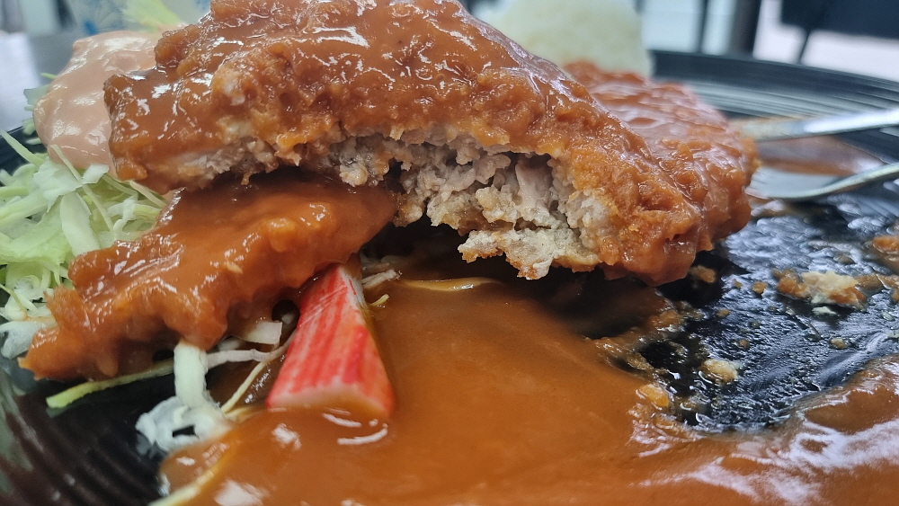 단무지나 피클같은 반찬은 셀프로 갖다 먹는 방식이지만 주문하면 에피타이저로 스프를 준다. 거기에 후추를 조금 뿌리면 예전에 갔던 경양식 집 비슷한 느낌이 나긴 한다. 돈까스 위주의 음식을 파는 곳이지만 기름 냄새는 거의 나지 않았다. 오랜 세월 영업하면서 갖게 된 노하우가 아닐까 싶다. 조금 기다리고 있자니 드디어 우리가 주문한 음식이 나왔다. 정식이라는 메뉴는 돈가스와 함박, 그리고 생선가스 까지 모두 나오는 메뉴였다. 세가지를 모두 즐길 수 있기 때문에 이걸 주문하는 사람들이 제일 많은 것 같았다.