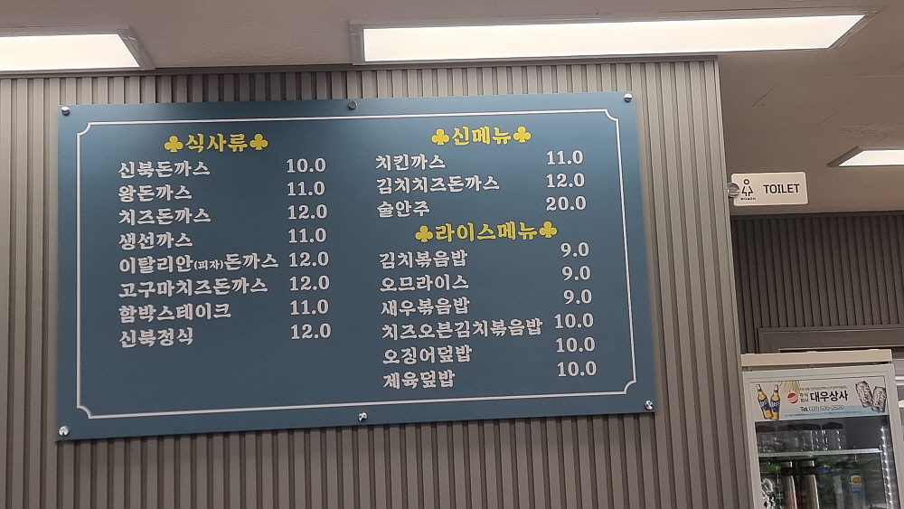 이날 가본 신북돈까스는 가채리에 있다. 과거에는 세겐돈가스라는 이름으로 43번 국도변에 있었다. 장소를 확장 이전하면서 상호도 신북돈까스로 바꾼 것이다. 요즘의 물가를 생각하면 이집의 시그니쳐 돈까스의 가격이 10,000원이라는 것은 무척 고무적인 일이다. 우리는 정식이라는 메뉴와 돈까스를 주문했다. 일단 손님이 주문을 하면 사람 수대로 요구르트를 갖다 준다. 후식을 미리 주는 셈이다. 새로 생긴 식당이다 보니 실내는 엄청 깔끔했고, 돈까스를 주로 팔던 과거의 경양식집 분위기가 아니라 편하게 와서 먹을 수 있는 기사식당 비슷한 느낌이라 보면 되겠다.