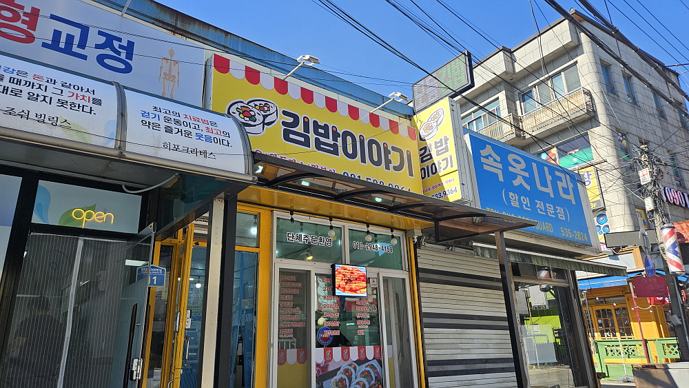 포천동 구시가지에는 아기 자기하게 식당도 많고, 술집도 많다. 이날 우연히 이집을 발견했다. 아주 유명한 순대국집인 미성식당 건너편에 있는 분식집이다. 이름은 '김밥이야기' 이다. 예전엔 다른 식당이 있었던 자리 같은데 이젠 우리가 그렇게나 좋아하는 김밥집이 생긴 것이다. 김밥은 아침이고, 낮이고 언제나 먹고 싶은 국민 음식이다. 바쁜 사람들은 김밥을 테이크 아웃하여 차 안에서 먹곤하고, 집에 있는 아이들의 간단한 먹을거리로도 인기가 높다. 행사가 있는 날은 몇 십 개씩 주문하여 배식하여 먹곤 하는 행사용 음식이기도 하다.
