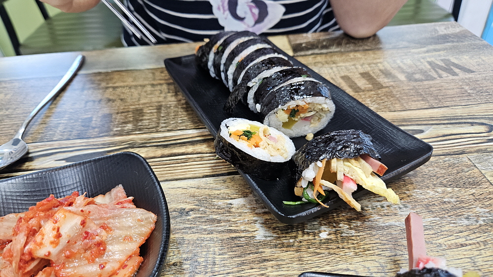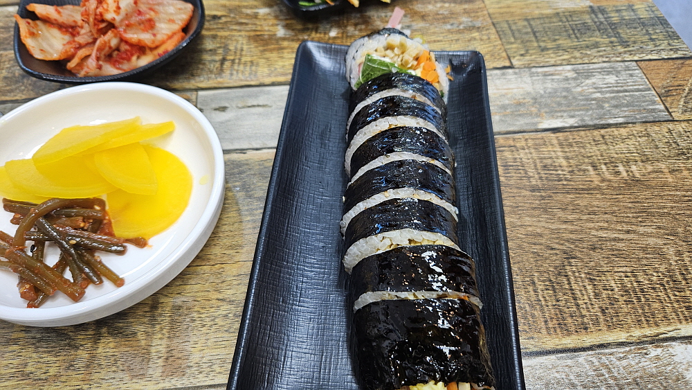 말 그대로 땡초김밥은 엄청 매운 맛이 나야 하는데 한 개 먹어 봤더니....엥? 그렇게 맵지 않은데~ 하는 정도였다. 하지만 그것은 어디까지나 그런 부분이었고 뒤로는 정말 눈물이 나올 정도로 매웠다. 이렇게나 맵다니 땡초 맞네 맞아! 시그니쳐 원조김밥은 일반적인 맛이었다. 그런데 분명 바로 말아 주어 그런지 깊은 맛이 났다. 최근에 먹어본 김밥 중에 가장 맛이 좋았다고 생각한다. 왜 진작 이집을 몰랐지? 마땅한 김밥집이 별로 없다고 생각했던 어두운 과거를 일거에 지워버리는 날이었다. 두툼한 김밥이 3,000원이면 가격도 너무 착하다. 정말 신나는 곳이다.