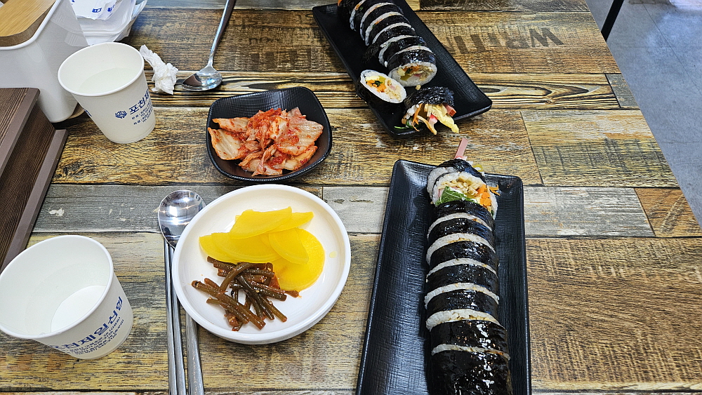 말 그대로 땡초김밥은 엄청 매운 맛이 나야 하는데 한 개 먹어 봤더니....엥? 그렇게 맵지 않은데~ 하는 정도였다. 하지만 그것은 어디까지나 그런 부분이었고 뒤로는 정말 눈물이 나올 정도로 매웠다. 이렇게나 맵다니 땡초 맞네 맞아! 시그니쳐 원조김밥은 일반적인 맛이었다. 그런데 분명 바로 말아 주어 그런지 깊은 맛이 났다. 최근에 먹어본 김밥 중에 가장 맛이 좋았다고 생각한다. 왜 진작 이집을 몰랐지? 마땅한 김밥집이 별로 없다고 생각했던 어두운 과거를 일거에 지워버리는 날이었다. 두툼한 김밥이 3,000원이면 가격도 너무 착하다. 정말 신나는 곳이다.