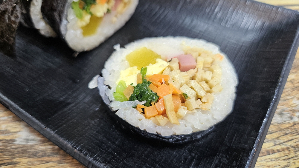 땡초 김밥의 속 중에 과연 무엇이 이렇게 눈물 날 정도의 매움을 던지는 것인지 살펴 보았다. 그런 모습이 재미있었던지 주인장께서 와서 파랗게 말려 있는 야채가 바로 그 땡초 맛의 비밀부위라 말해 주었다. 그래도 땡초 고추의 정말 매운 부분인 씨는 빼고 소스와 함께 만든 것이란다. 씨를 뺐는데도 이렇게나 맵다니 맵질이가 맞긴 맞나 보다. 밥이 넉넉하게 들어 있어 망정이지 아니라면 정말 눈물 콧물 다 쏟을 뻔 했다. 요즘 김밥들은 개성도 강하고, 아이템도 다양해져 먹는 사람이 다채롭게 즐길 수 있다. 이런 저런 다른 종류의 김밥을 주문하여 먹는 재미가 쏠쏠하다.