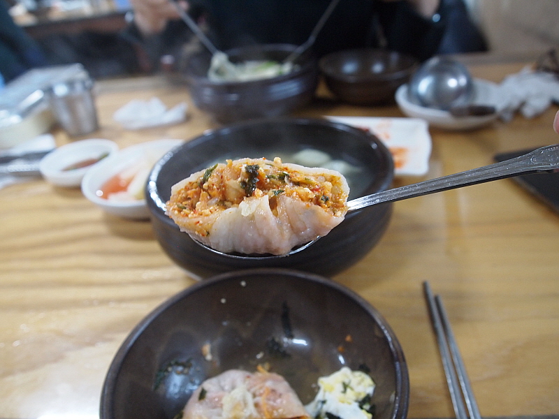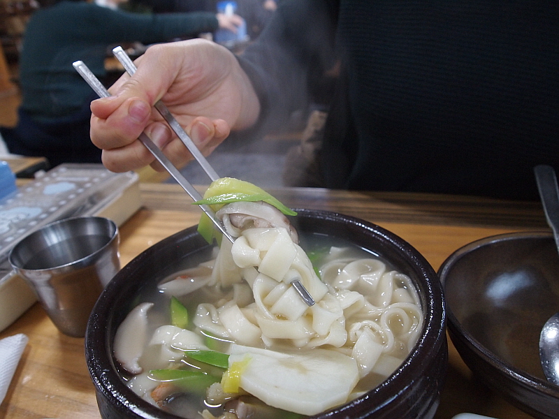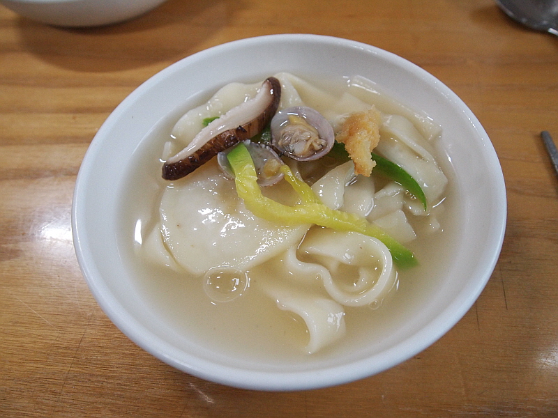 그러니 중간에 주문한 메뉴가 날아 가버려 사과하는 모습이 종종 보였다. 이런... 이러다 우리가 주문한 음식은 언제 나오려나? 그렇게 한 40분 정도 기다리고 있자니 그래도 우리가 주문한 칼국수와 만두국이 무사히 나왔다. 손님들은 계속해서 밀려 들어 오고, 입구 근처에 앉은 까닭에 어찌나 부산스럽던지... 하지만 일단 칼국수와 만두국의 국물은 무척 맛이 좋았다. 처갓집에서 장모님이 끓여 주시는 것 같은 느낌의 구수하고 진한, 그리고 자연스러운 맛이었다. 황태를 기본으로 약간의 다른 재료와 역시 마무리는 내가 좋아하는 MSG 같았다. 이게 들어가야 전체적으로 음식의 균형이 잡히면서 완성된 맛이 된다. 솔직히 나는 MSG가 정말 제대로 된 발명품이자, 인간의 삶의 질을 올려주는 좋은 기술의 걸작품이라 생각한다.