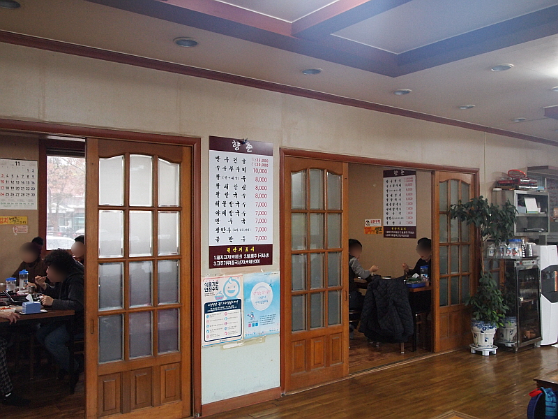 오늘 가 본 이집은 그렇게 전혀 예상하지 않고 지나다 들어간 집이다. 밖에서 보니 주차장에 차들이 제법 서 있길래 그래도 맛이 좋은 집인가 보다 하고 통밥으로 찍었다. 대부분 밖에서 부터 맛집의 포스가 느껴지기 마련이고, 이런 비오는 휴일 왠만한 칼국수 집들은 모두 이렇게 문전성시일 것이다. 그런데 막상 들어가 인터넷을 검색해 보니 이집이 근방에서는 꽤나 이름이 있는 집이었다. 별내 사람들이 아끼는 집이라면 우리 입맛에도 분명 잘 맞을 것이다. 일단 실내는 손님들로 가득 차 있었다. 겨우 자리 하나를 얻어 앉을 수 있었다. 메뉴판을 보니 가격도 괜찮은 편이었다. 해물 칼국수가 7천 원 이라면 분명 착한 가격이다.