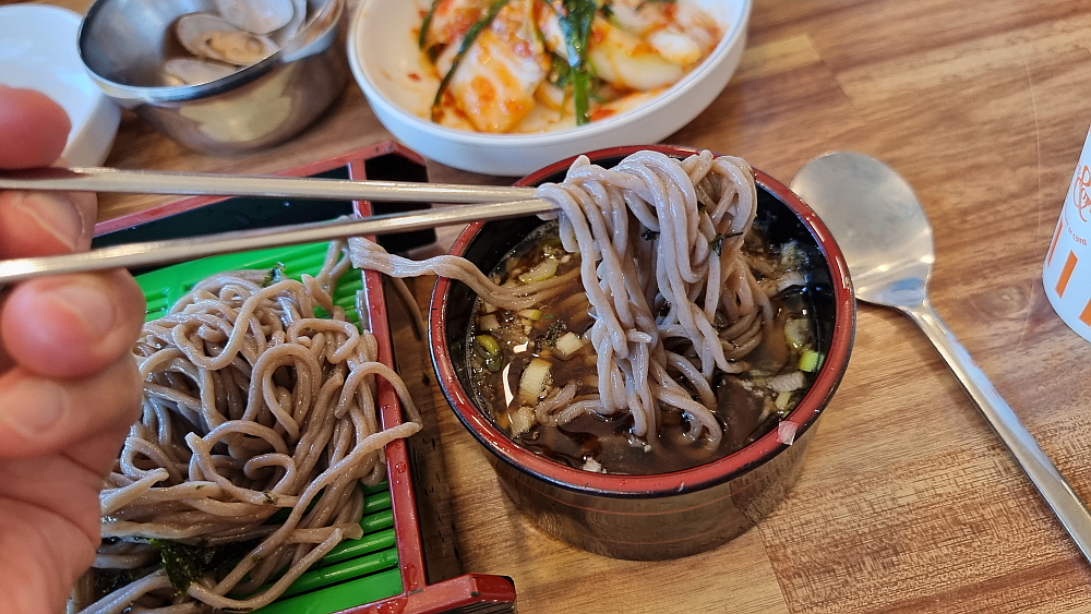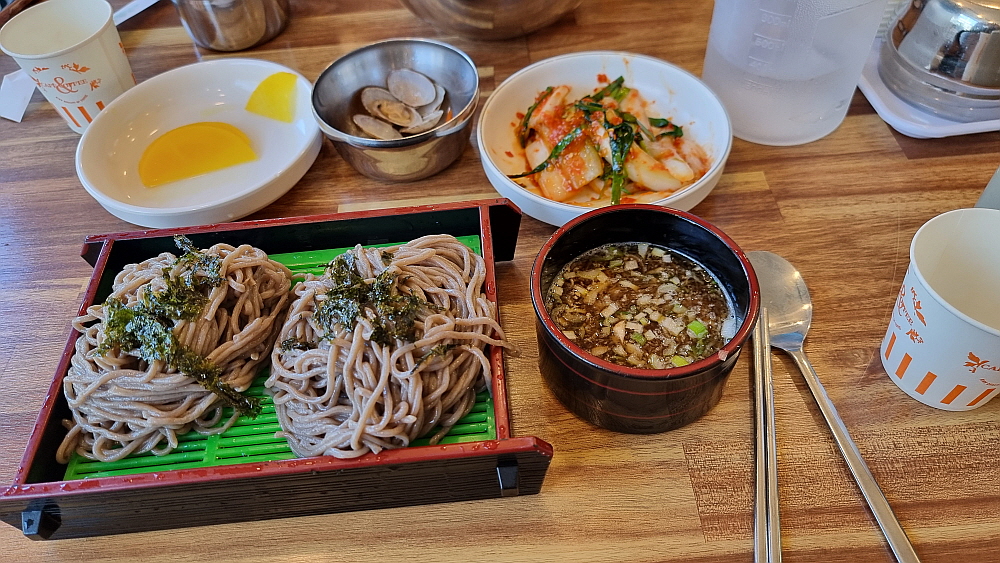 바지락 칼국수는 처음 예상했던 비주얼에 맛도 무난한 그런 칼국수였다. 바지락만 고집하는 전문집이 아니라면 이런 비주얼과 맛이 당연한 것이다. 하지만 아무래도 아주 깊은 바지락의 맛이라고 하지는 못할 것 같다. 정말 말 그대로 무난했다. 그리고 참 특이하게도 칼국수와 함께 팔고 있는 메밀소바가 아주 근사했다. 일식집에서 나오는 것과 비주얼 면에서 차이가 없었다. 그런데 맛까지 그 이상이었다. 참 신기한 일이다. 메밀소바의 국물을 무엇으로 만들었는지 몰라도 정말 진국이었다. 사다 파는 것이라 하기엔 좀 맛이 다르다고 할까? 암튼 아주 깊고 부드러우면서 메밀소바의 특징을 그대로 살려주는 진한 국물이었다.