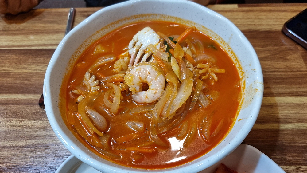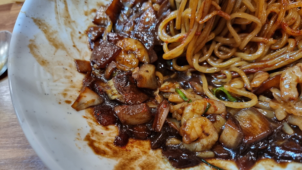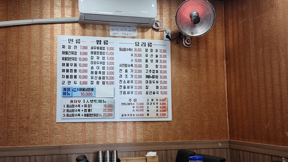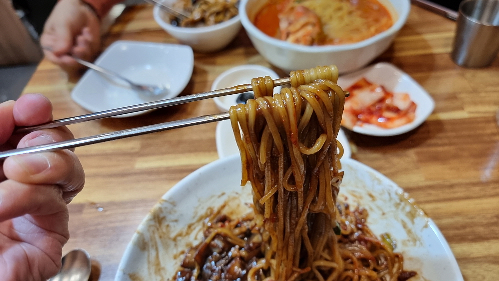 밖에서 볼 때보다 식당안으로 들어가면 실내가 더 넓다는 것을 알 수 있다. 점심시간이 살짝 지난 오후 1시 정도였는데 역시 손님들이 자리를 거의 잡고 앉아 있었다. 분명 홍차우 앞의 거리에는 사람이 없는데 이집은 문전성시였던 것이다. 처음 오는 중화요리집에선 우선 가장 시그니쳐인 짜장면과 짬뽕을 주문하곤 한다. 이 음식들을 먹어 보면 이집의 진정한 포스를 알 수 있기 때문이다. 그래서 해물간짜장과 짬뽕을 주문했다. 어쩌면 이날 점심으로 전국에서 수 백 만명은 이런 식사를 했을 것이다. 우리도 거기에 동참한 셈이다.