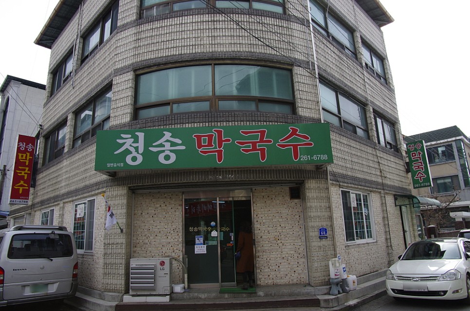 춘천에 막국수 집이 많은 거야 당연한 일인데, 기왕이면 관광객을 상대하는 이름난 집보단 현지 사람들이 자주 가고, 사랑하는 집을 가고 싶었다. 어느날 인가부터 춘천에 오면 유명하다는 막국수 집보다 이렇게 현지 골목에 있는 집을 가고 싶어 졌다. 그래서 찾은 곳은 석사동에 있는 청송막국수 였다. 골목 안쪽에 위치하여 주차가 불편하고 밖에서 보이지 않아 아는 사람만 갈 수 있는 전형적인 동네 식당이었다. 바로 내가 원하는 컨셉이기도 했다. 한가한 주택가 골목길의 중간 쯤 이집 있다. 세월의 내공은 느껴지나, 부산스럽거나 너무 내대지 않는 조용한 여염집 같은 인상이었다.