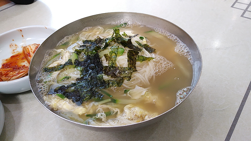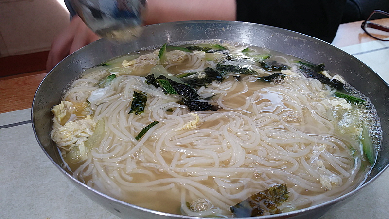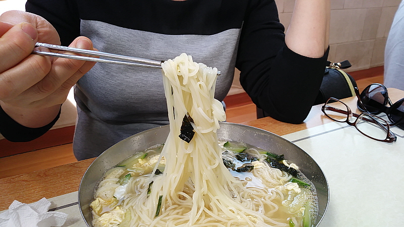 예전엔 결혼식에 가면 지금처럼 부페나 갈비탕이 아니라 이렇게 하얀 국수를 내어 주곤 했다. 이름하여 잔치국수이다. 잔치 자리에 국수를 내 주는 것은 장수와 무슨 일이든 술술 잘 풀리라는 의미가 있다고 했다. 국수 가락이 입에 넘어가듯 그렇게 세상 일이 잘 풀린다면 고민과 번민을 할 사람이 누가 있으랴? 일본에서도 한 해를 넘길 때는 잘 넘어가라고 해넘이 국수를 먹는 전통이 있다고 하는데 역시 국수는 그런 기원을 담는 의미가 있다. 이곳의 잔치 국수는 그런 의미를 잘 담고 있는 국수라고 해야겠다. 진한 멸치 육수에 부드러운 중면을 사용하여 어디에나 있지만 특별한 맛을 간직한 그런 국수라고 볼 수 있다. 진한 국물이 주는 여운이 오래 남을 정도로 내 입에는 감동적인 국수였다. 다만 너무나 익숙한 맛이라 집에서 먹는 것 같은 착각을 불러 일으킬 정도였다.