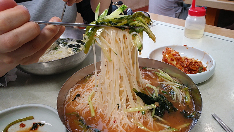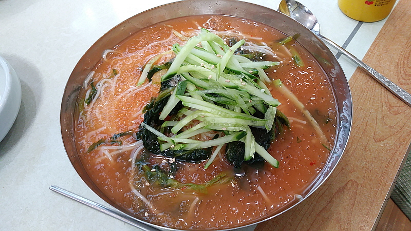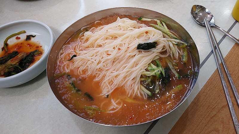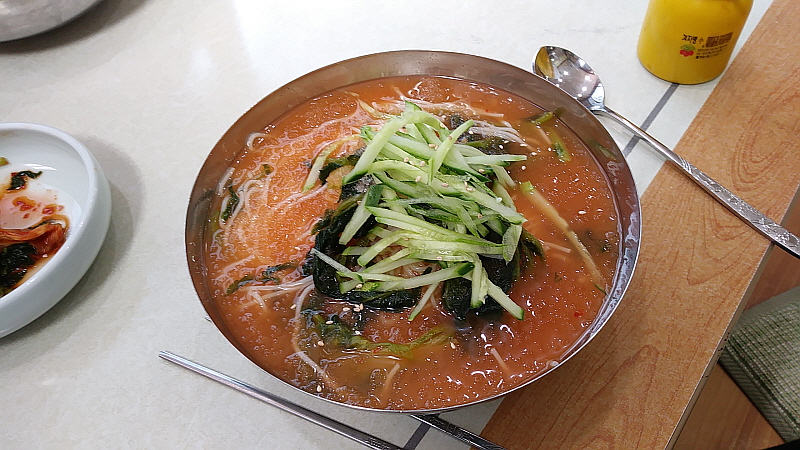 분명 진하고 맛있는 국수였지만 뭐랄까 임팩트가 없다고 해야 할까? 뭔가 조금 부족한 느낌이 있었다. 내가 주문한 것은 열무김치 국수 였는데 일종의 김치 말이 국수였다. 요즘 어울리는 시원한 얼음 국물이 일품인 그런 국수였다. 국수는 삶은 다음에 찬물로 헹궈야 면발이 탱탱해 진다는데 역시 이렇게 시원한 국물에 들어간 국수는 식감이 더 쫄깃하다. 잔치국수 보다는 이 열무김치 국수가 더 내 입에 맞았다. 잔치국수는 뭐랄까 너무 익숙하고 흔한 맛이라고 해야할까? 아무튼 이 열무김치 국수는 정말 단숨에 먹어 버릴 정도로 입에 맞았다.