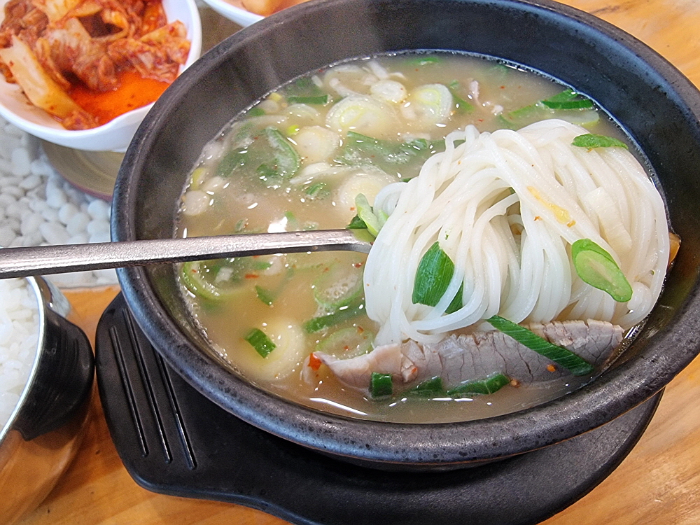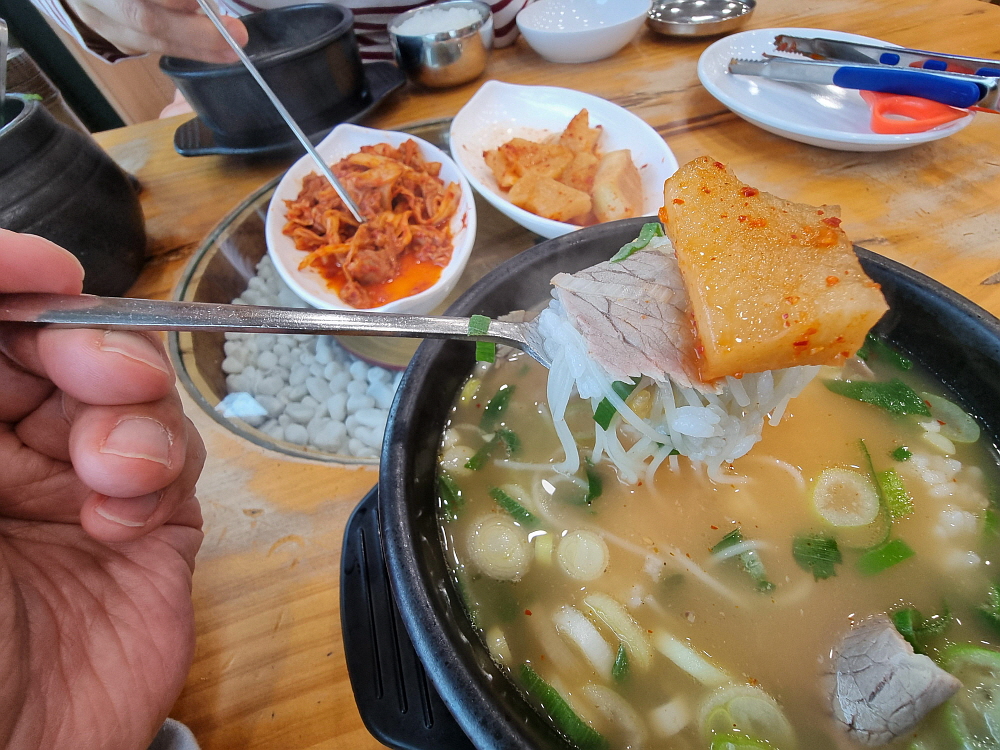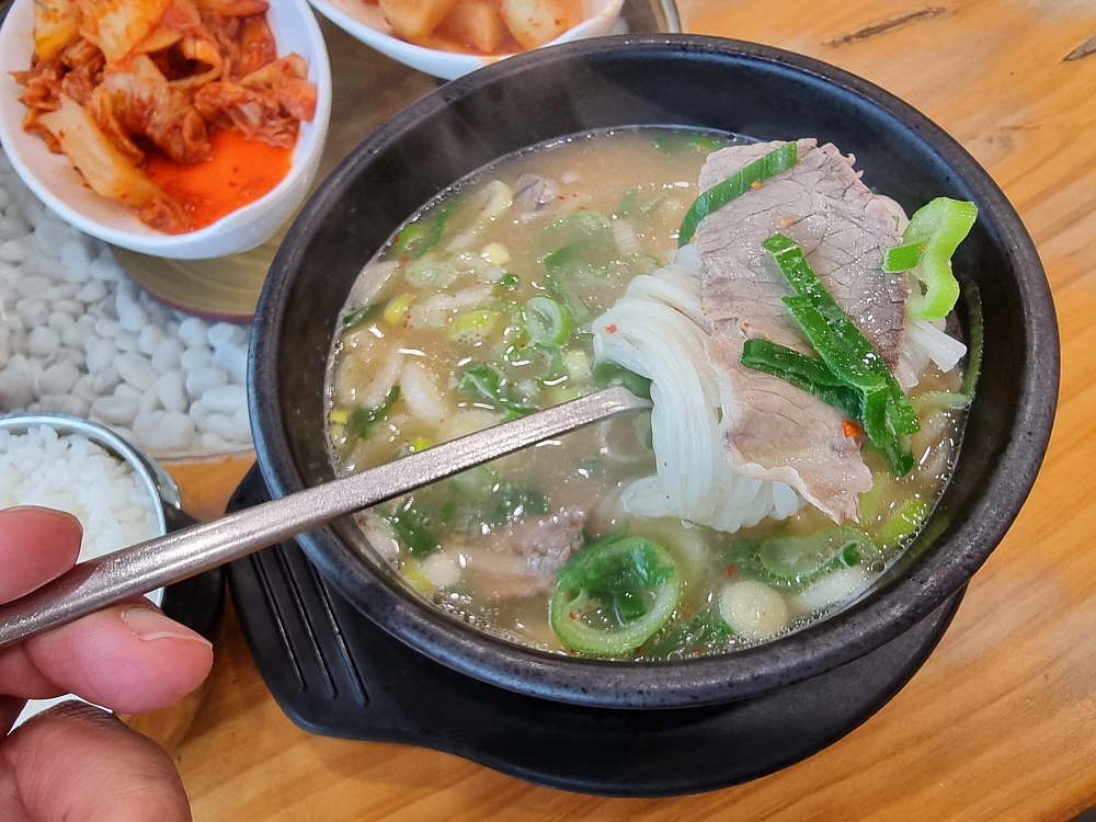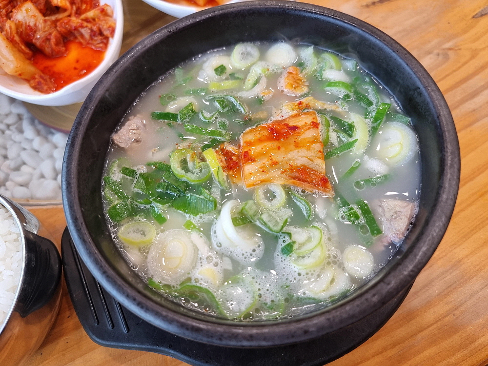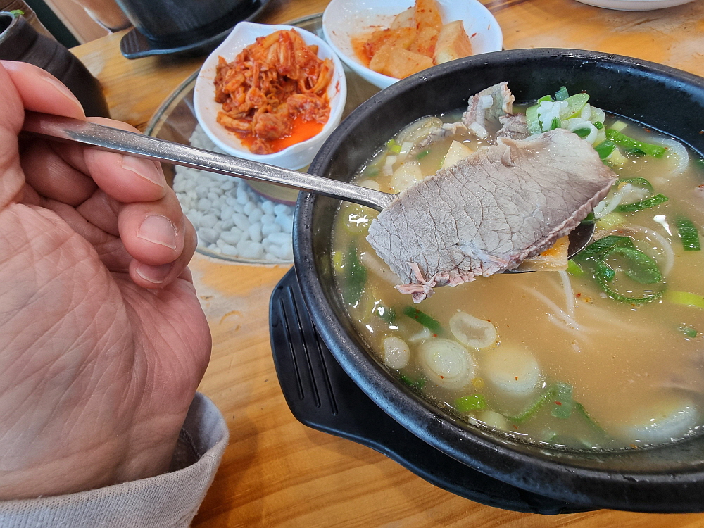요즘 어디가나 밥 한 끼에 만 원 정도는 기본이니 여기 설렁탕 값이 비싸다 할 순 없을 것이다. 그래도 고기가 튼실하게 들어있다. 김치와 깍뚜기가 좀 달긴 했지만 기본적으로 국물과 잘 어울렸다. 처음 들어갈 때는 손님이 두 어 팀 밖에 없었지만 나중에 나올 때는 거의 만석이었다. 과연 맛집이 맞긴 하나보다. 한국 사람들의 든든한 점심을 책임지는 고마운 식당이라 하겠다. 식당 앞에 주차장도 넓고, 자리도 깔끔하고, 만족스러웠다.