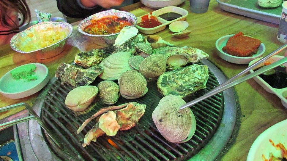 가장 먼저 등장한 주 메뉴는 조개구이였는데 세트 메뉴라고는 하지만 양이 꽤나 많은 편이었다. 여러 종류의 조개를 구워먹는 맛이 재미있었고, 맛도 좋았다. 왜 예전엔 조개구이 집이 너무나 많다 싶을 정도로 도처에 깔려 있었는데 요즘은 도통 찾아 볼 수 없는지 모르겠다. 무분별한 과당 경쟁이 불러온 일종의 쟁앙같은 폐업이었다. 물론 조개 자체가 맛이 없거나 구워먹는 재미가 없는 것은 아니지만 어쨌든 출혈 경쟁이 작열하면서 다 함께 사라져 버린 조개구이 집들에 대한 나의 미련과 아쉬움은 컸다. 그런 내 마음을 알아주기라도 하는 듯 이 집의 조개구이는 양도 맛도 괜찮았다.
