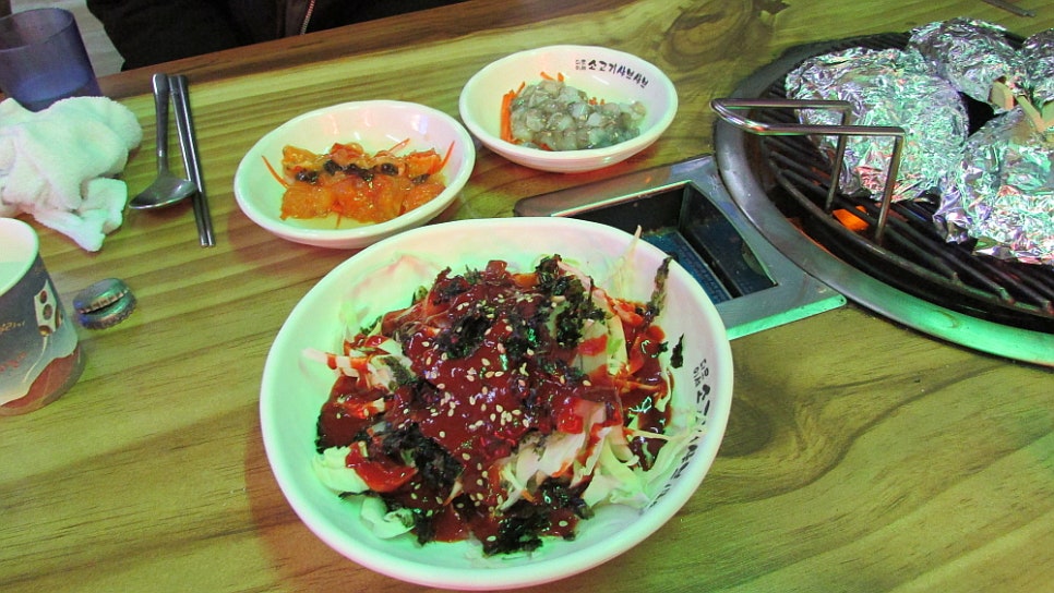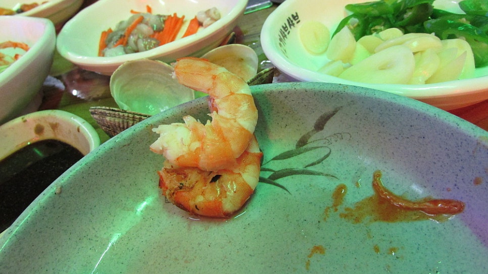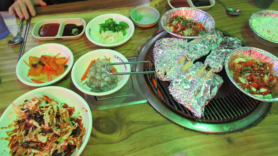 그리고 나서 횟집답게 여러 반찬들이 나왔는데 식전에 바닷가를 산책하고 와서인지 입에 잘 맞는 것이 그런대로 맛이 좋았다. 그리고 역시 백미는 호일에 감쌌던 낙지와 새우였는데 제철이 아니라고는 하지만 그래도 낙지는 낙지인지라 고소하고 쫄깃한 식감에 절로 탄성이 나왔다. 이렇게 되면 아마도 함께 주문한 매운탕과 생선회, 해물탕도 괜찮으리라 기대가 됐다.