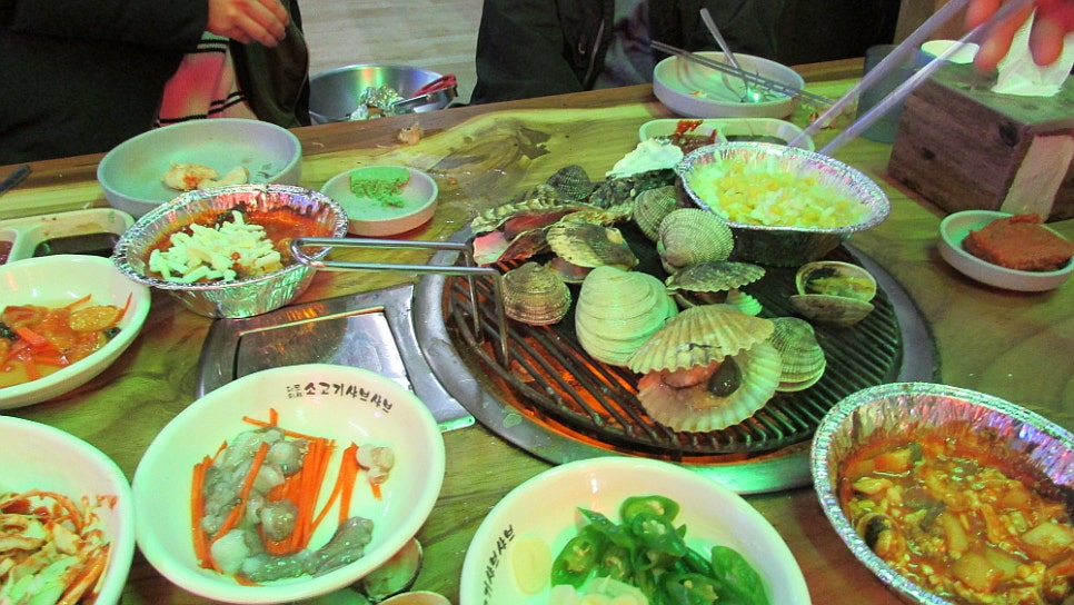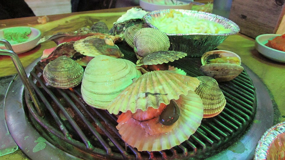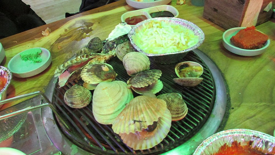 가장 먼저 등장한 주 메뉴는 조개구이였는데 세트 메뉴라고는 하지만 양이 꽤나 많은 편이었다. 여러 종류의 조개를 구워먹는 맛이 재미있었고, 맛도 좋았다. 왜 예전엔 조개구이 집이 너무나 많다 싶을 정도로 도처에 깔려 있었는데 요즘은 도통 찾아 볼 수 없는지 모르겠다. 무분별한 과당 경쟁이 불러온 일종의 쟁앙같은 폐업이었다. 물론 조개 자체가 맛이 없거나 구워먹는 재미가 없는 것은 아니지만 어쨌든 출혈 경쟁이 작열하면서 다 함께 사라져 버린 조개구이 집들에 대한 나의 미련과 아쉬움은 컸다. 그런 내 마음을 알아주기라도 하는 듯 이 집의 조개구이는 양도 맛도 괜찮았다.