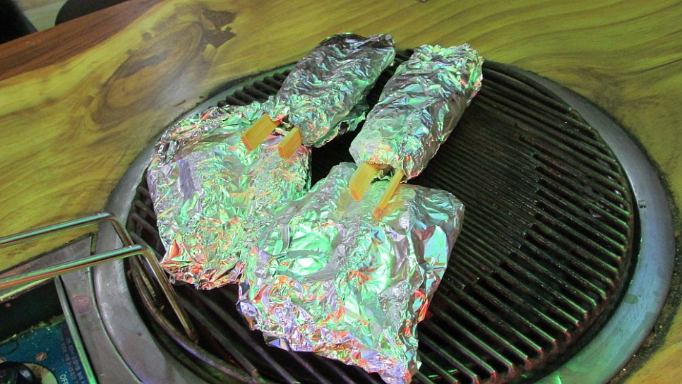그렇게 우여곡절 끝에 점심 무렵 도착한 제부도에서 점심을 먹게 되었다. 관광지 비슷한 분위기의 식당은 잘 들어가지 않는데 이날은 함께 간 사람들의 의견도 있고, 또 바다 바로 옆에서 먹는 맛도 있고 해서 해변 바로 옆에 있는 이 식당을 들어갔다. 이름이 특이한 이 식당에서 우린 회를 먹기로 했지만 세트 메뉴가 더 현명하다는 판단 하에 여러 메뉴들을 섞어서 주문했다. 주문하고 얼마 안 있어 호일에 싼 이것을 내 왔는데 새우와 낙지라고 했다. 아직은 철이 아니라서 냉동이라고는 했지만 아마도 이 지역에서는 다 이렇게 서비스를 하는 모양이었다.