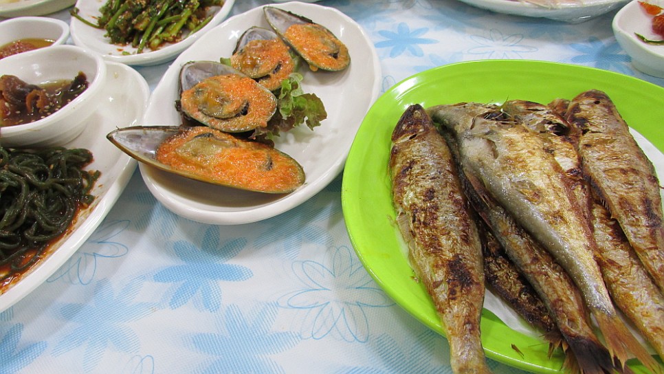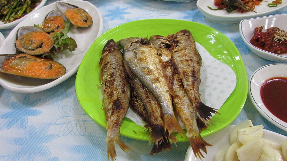 하지만 밴댕이를 회가 아닌 구이로 먹는 것은 나름 괜찮았다. 생긴 모양이 마치 전어 같았는데 맛은 좀 다르지만 가시가 많기는 전어와 비슷했다. 사실 생선을 불에 구워 먹는다면 맛없는 것이 어디 있겠는가 만은 특이한 식감과 야들거리는 밴댕이 살은 술 안주로는 그만이었다. 아마도 이곳에서는 이 철에 밴댕이가 많이 잡히는 모양이다. 그러니까 밖에 배를 갈라 말리는 것도 밴댕이 젓갈도 밴댕이 심지어 회와 구이도 밴댕이로 해서 먹고 있는 것 아닌가?