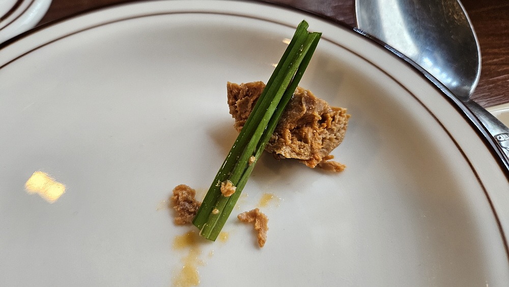 에피타이저 식으로 주는 샐러드와 국물을 먹고 있노라니 첫 메뉴로 아귀간이 나왔다. 일본 사람들에겐 나름 고급의 시그니쳐 안주라 하는데 우리에겐 영 생소한 음식이다. 아귀간을 조림식으로 만든 것인데 짭짤하면서 고소하고, 생선 내장 특유의 식감이 있다. 비린내는 거의 나지 않지만 생선의 냄새는 나는 희안한 음식이다. 아귀간이 귀한 것인지 만들기가 힘든 것인지 아무튼 이 안주의 가격이 제법 있는 편이다. 강남에서는 한 접시에만도 몇 만원을 호가하는 메뉴라 들었다. 이집의 아귀간도 맛이 괜찮았다. 어떻게 만드는 것인지 몰라도 참 이색적인 식감이다.