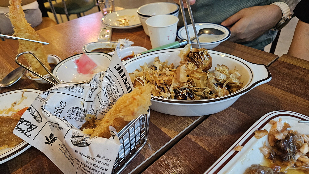 일본을 대표하는 새우튀김도 나왔고, 간식으로 주로 먹는 다코야끼도 나왔다. 하긴 오사카인가 에서는 다코야끼를 밥반찬으로 먹는다는 소리를 들은 것 같기도 하다. 우리에겐 간식이지만 일본에선 밥상에 올라오는 식사메뉴인가 보다. 이것 저것 먹다보니 참 다양하게 많이도 먹었다. 일본 튀김의 맛이란 말 안 해도 다 아는 바로 그 바삭함의 극치였고, 그리 달지 않은 다코야끼 속에는 정말 커다란 문어가 들어 있었다. 이집에서 받은 전체적인 느낌은 재미있는 맛이라는 것이다. 술 안주로 그냥 막 먹어버리는 것이 아니라 전시회에서 작품을 감상하듯 그렇게 먹는 집이란 느낌이다. 그것에 재미있었다.