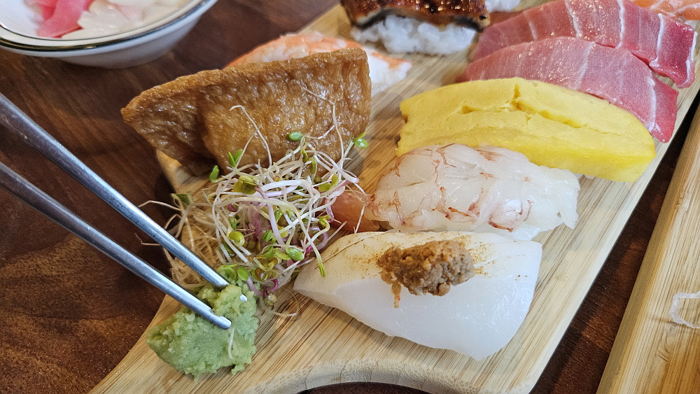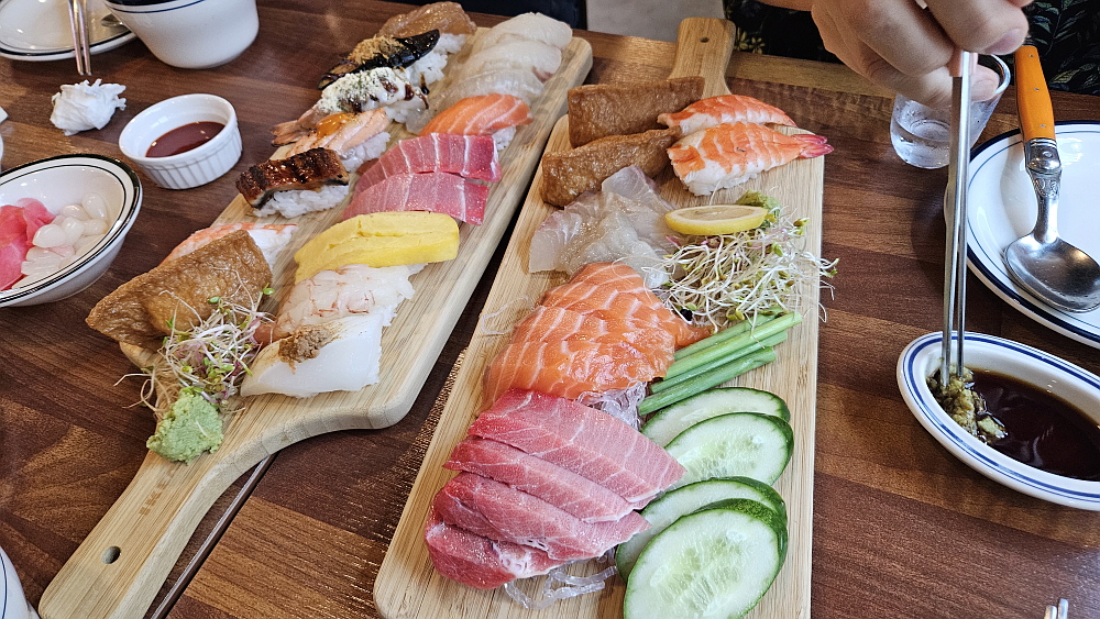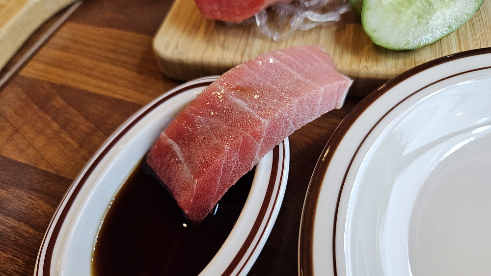 다음은 메인 음식이었다. 단품으로 주문한 사시미와 스시가 나왔다. 연어와 참치로 구성된 사시미는 사실 참치를 먹기 위해 주문한 것이다. 참치만으로 구성된 사시미도 있지만 가격이 좀 비싼 편이라 이렇게 함께 들어간 안주로 사시미를 주문했다. 일본 특유의 숙성회 맛이 그만인 아주 좋은 참치회였다. 사실 양이 많지 않은 사람이라면 무한리필로 주는 참치집보다 이렇게 단품으로 나오지만 제대로 맛을 살린 집이 더 좋다. 스시는 크기 큰 편이었다. 안주삼아 먹을 수 있게 작은 사이즈가 나오는 줄 알았는데 아니었다. 이 정도라면 식사라 해도 과언이 아닐 것이다.