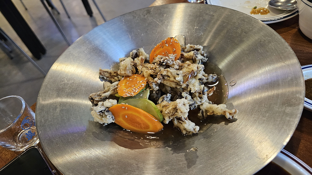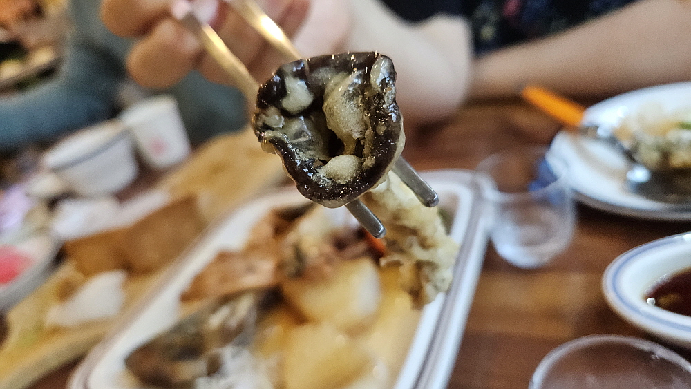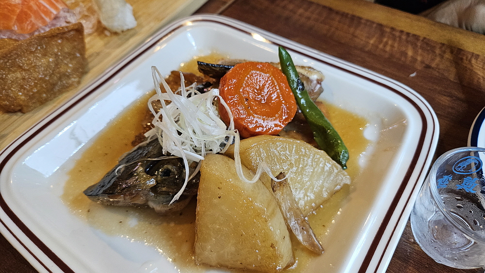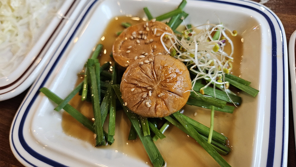서비스로 준다는 연어 머리 조림과 중국집의 탕수육과 식감은 거의 비슷한데 느타리 버섯으로 만든 탕수버섯이 나왔다. 이게 참 재미있는 식감이었다. 좀 큰 느타리 버섯이긴 했지만 부드럽고, 씹을 때 식감이 거의 없는 느타리 버섯으로 어떻게 이렇게 돼지고기같은 식감의 탕수버섯을 만들었는지 신기했다. 자꾸 손이가는 것이 예상치 못한 복병을 만난 것처럼 허를 찔린 기분이었다. 물론 기분 좋은 급습에 맛도 훌륭했지만 말이다. 일본 사람들의 조림은 우리네와 달리 달고 간이 세지 않다. 그리고 섬나라라 그런지 무가 많이 나서 무를 듬뿍 넣는 것이 특징이다. 조림 국물이 스며든 무의 맛은 그저 밥을 부르는 맛이다.