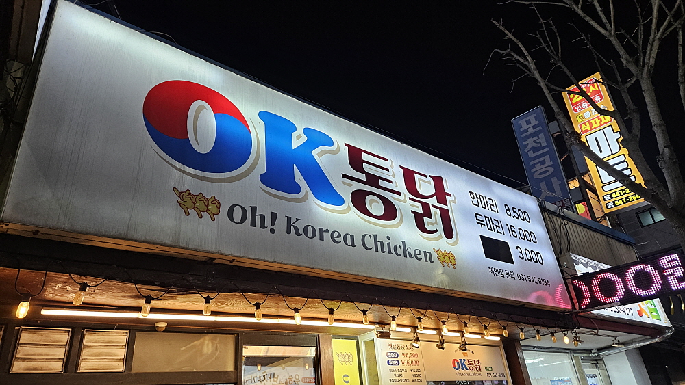 우리나라 사람들의 외식으로 가장 많이 먹는다는 통닭은 누구라도 가끔은 몸서리 쳐지게 먹고 싶을 때가 있다. 이날 저녁이 그랬다. 우리는 다른 그 어떤 음식보다 후라이드 치킨이 먹고 싶었다. 하지만 그 많은 치킨집 중에 어디를 갈 것인가였다. 동네에 가장 많은 식당이 바로 치킨집이기 때문에 어딜가야 할지 헤매게 된다. 우리가 생각한 곳은 송우리 시내 원일아파트 입구에 있는 OK통닭 이란 곳이었다. 지금의 상호가 아닌 다른 이름으로 이집 자리는 계속 통닭집이었다. 식당 자리도 그런 기운이 있는가보다. 상호는 바뀌었지만 계속 한 자리에 통닭집이 들어 선다는 것은 신기한 일이다.