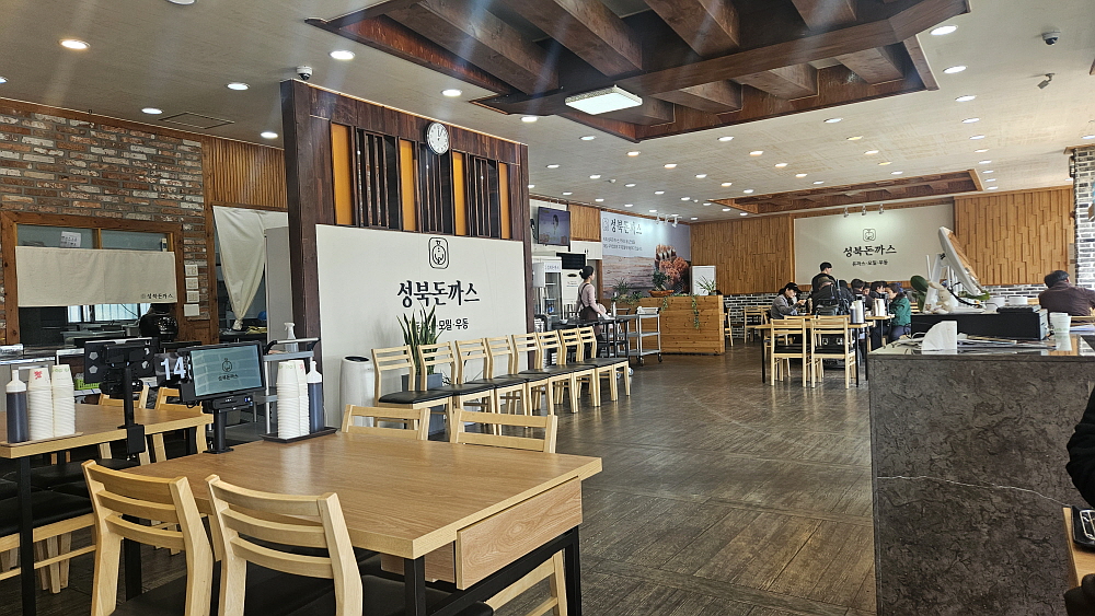 이집이 오픈하기 전에 이곳은 만두전골을 팔던 식당이었다. 그 전엔 선지해장국집도 있었다. 분명 대로변에 있는 몫이 괜찮은 곳인데 이상하게도 자꾸 업종이 바뀐다. 만두전골을 팔던 식당일때와 큰 변화는 없지만 자리가 뭔가 허전해 보였다. 아마도 전에 있던 테이블들을 많이 없앤 모양이다. 이유는 잘 모르지만 약간은 휑하다는 느낌이 들었다. 원래 성북돈가스는 기사식당으로 시작한 집이다 보니 인테리어 보다는 양이나 맛으로 승부를 걸었던 집이다. 하지만 여긴 뭐랄까 예전 성북돈가스보다는 고급진 분위기라고 해야할까? 분명 과거의 성북돈가스에서 변화된 느낌이다.