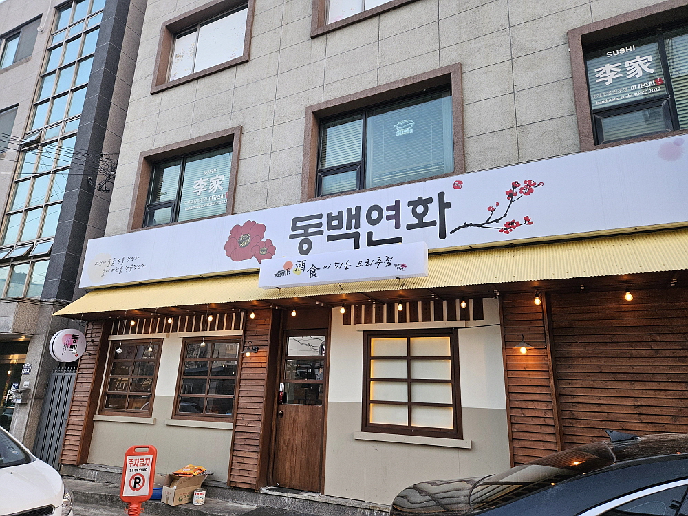 원래는 익숙한 닭갈비를 먹을 생각이었다. 술 한 잔 하기 좋은 저녁 메뉴로 자주 선택했던 집이다. 하지만 근처에 갔다가 이곳을 보게 되었다. 주점이 있다는 생각을 하지 못했는데 함께 간 동생 말로는 안주가 맛이 좋단다. 그렇다면 망설일 필요가 없는 것이다. 우리가 양으로 먹는 스타일이 아니기 때문에 맛난 안주가 있다면 가장 좋은 회동의 장소가 된다. 밖에서 봤을 때도 약간은 올드한 예전의 학사주점 비슷한 분위기의 술집이었다. 나이가 좀 있는 사람이라면 이런 분위기 싫어할 이유가 없다. 아니 아주 익숙하다. 이곳의 이름은 '동백연화' 라는 곳이다.